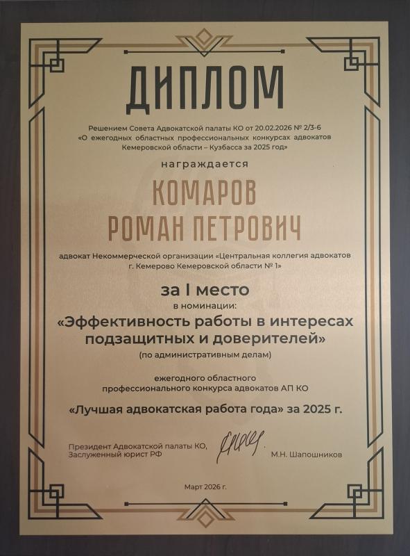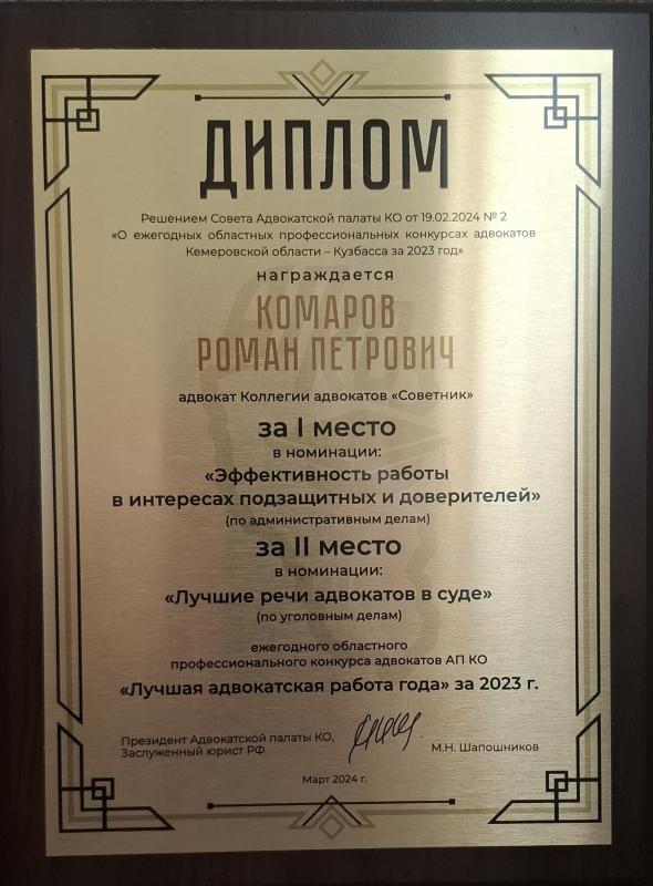 Список судебных дел в карточке адвоката может быть не полным и зависит от того, указан ли адвокат Комаров Роман Петрович в деле или нет