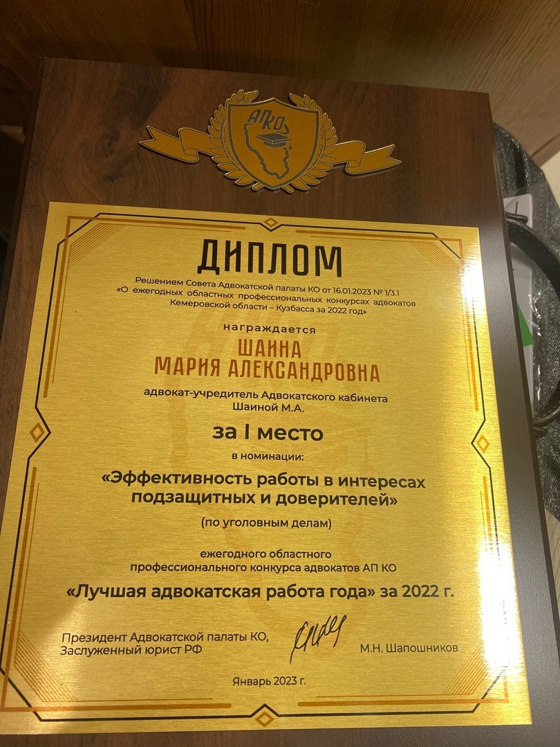 Список судебных дел в карточке адвоката может быть не полным и зависит от того, указан ли адвокат Шаина Мария Александровна в деле или нет