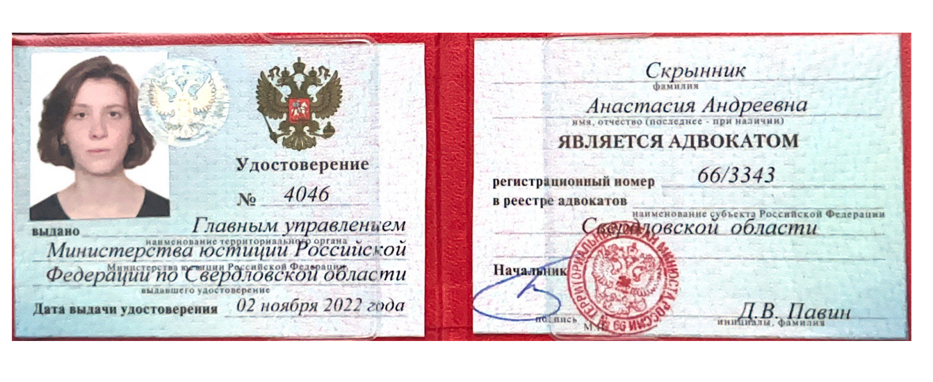 Я, адвокат Скрынник Анастасия Андреевна - защитник в гражданском и уголовном судопроизводстве. Моя задача-быть Вашим партнером, который помогает решить любые юридические задачи и найти выход из проблемных ситуаций с минимальными потерями. Являясь гарантом соблюдения Ваших прав, не позволю оказаться в положении, когда Вы рискуете потерять свободу, капитал, репутацию, стать жертвой произвола со стороны правоохранительных органов. Гарантирую своевременную реализацию ваших прав, защиту свобод и законных интересов. Обращайтесь и Ваше доверие будет оправдано!