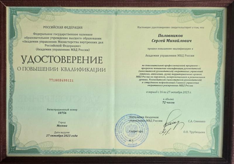 Повышение квалификации руководителей следственных органов МВД России - Москва