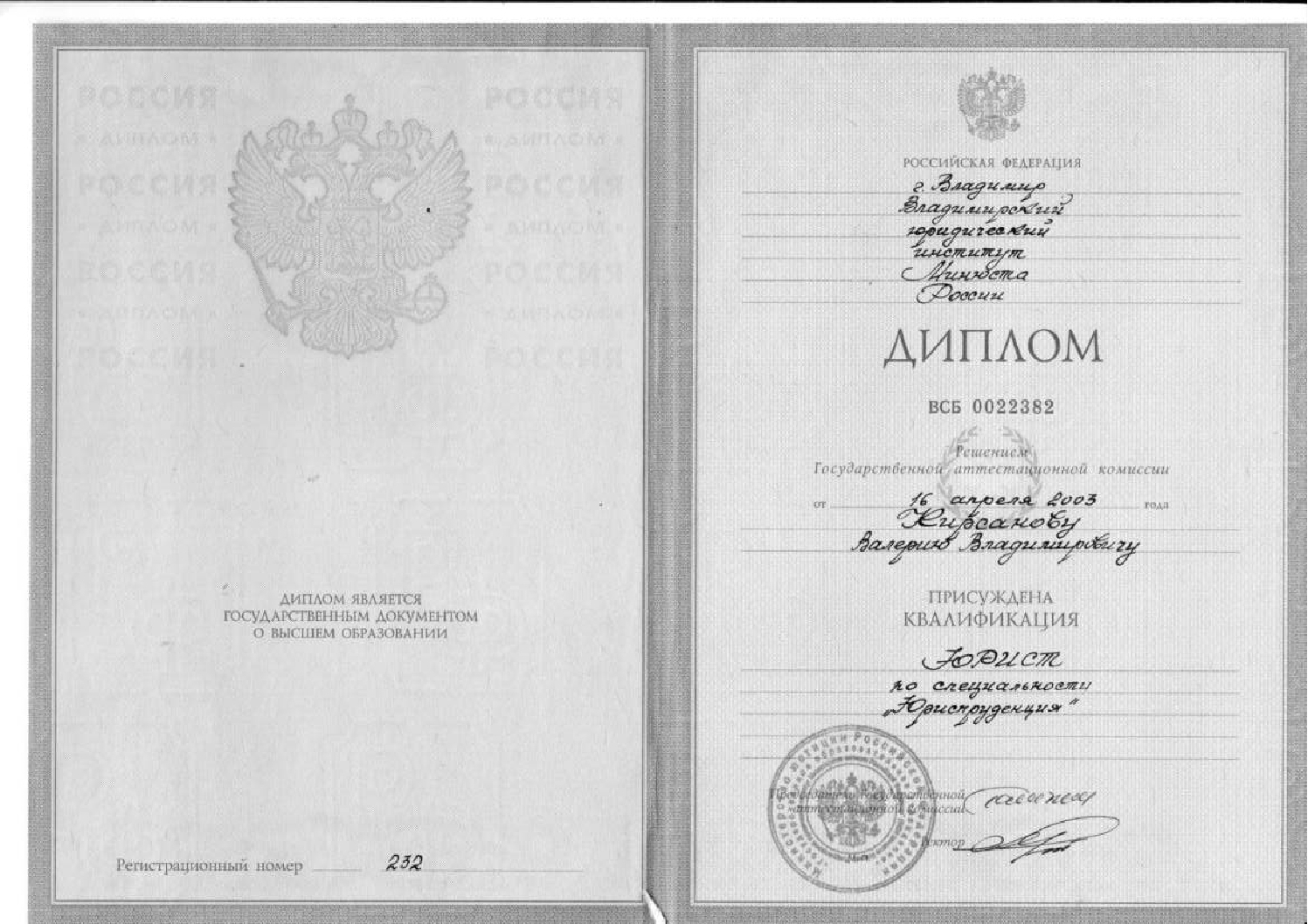 Владимирский юридический институт Федеральной службы исполнения наказаний — Юриспруденция — Иваново