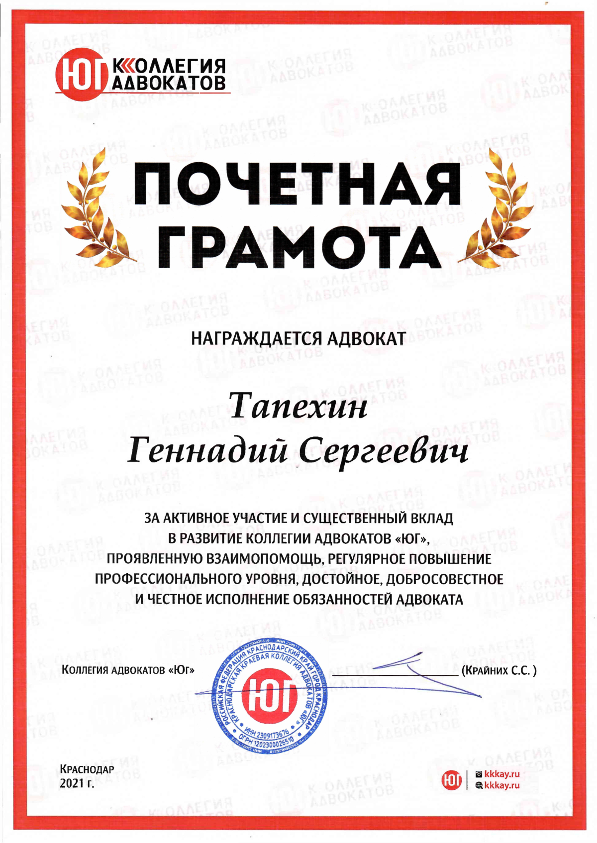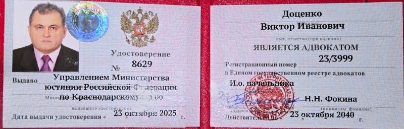 Действующий адвокат Краснодарской краевой коллегии адвокатов. Опыт юридической практики более 25 лет.