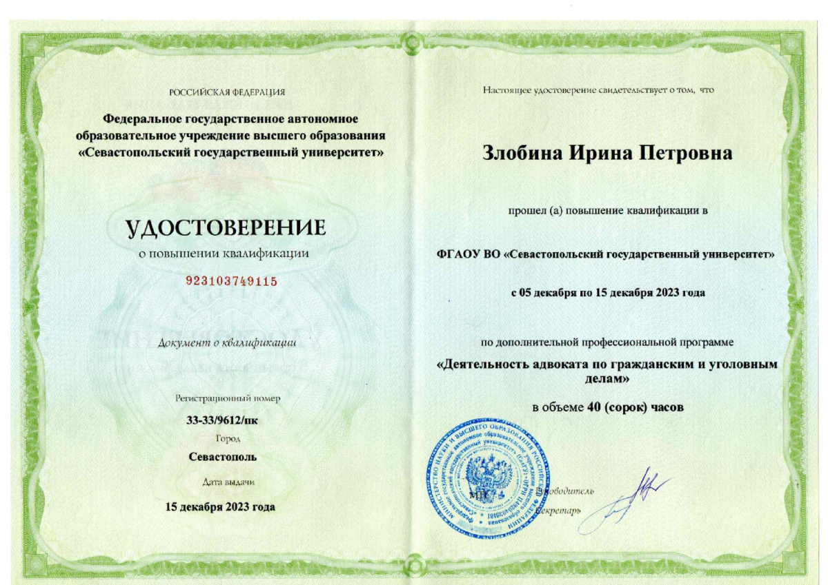 Закончил Саратовский юридический институт с отличием. Имею 20 лет опыта работы в органах прокуратуры РФ и 5 лет адвокатской практики. Специализируюсь на уголовном, гражданском, семейном, трудовом, земельном праве и других областях. Являюсь высококлассным специалистом в области уголовного права. Не оказываю услуги по налоговому законодательству и защите интеллектуальных прав.