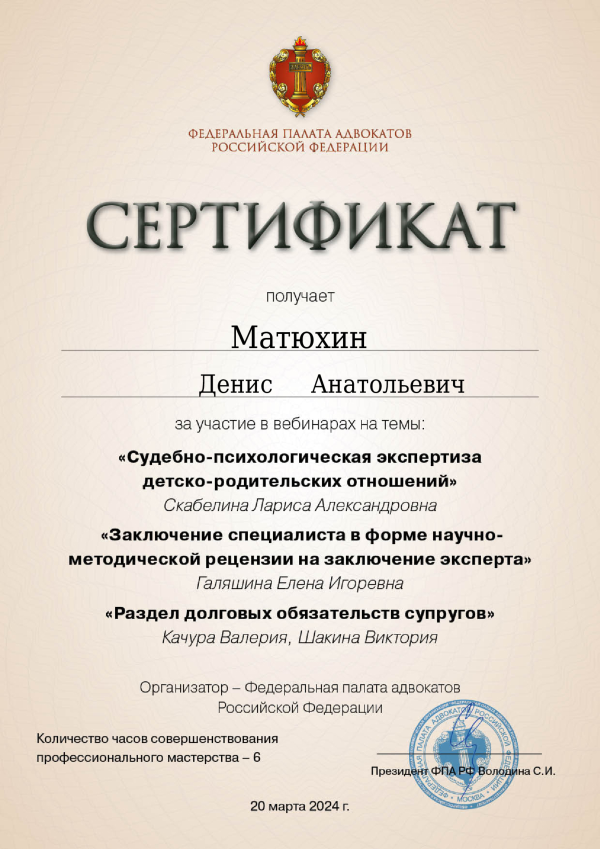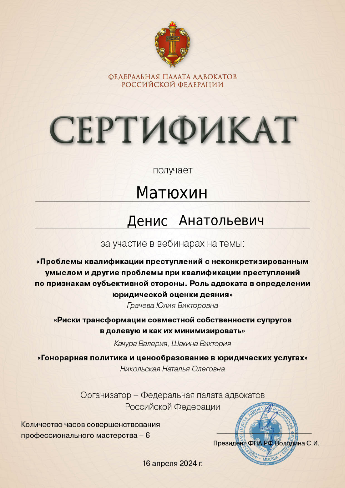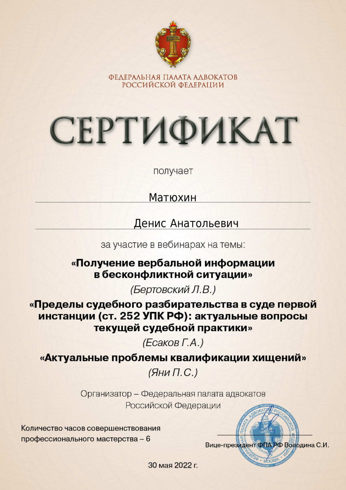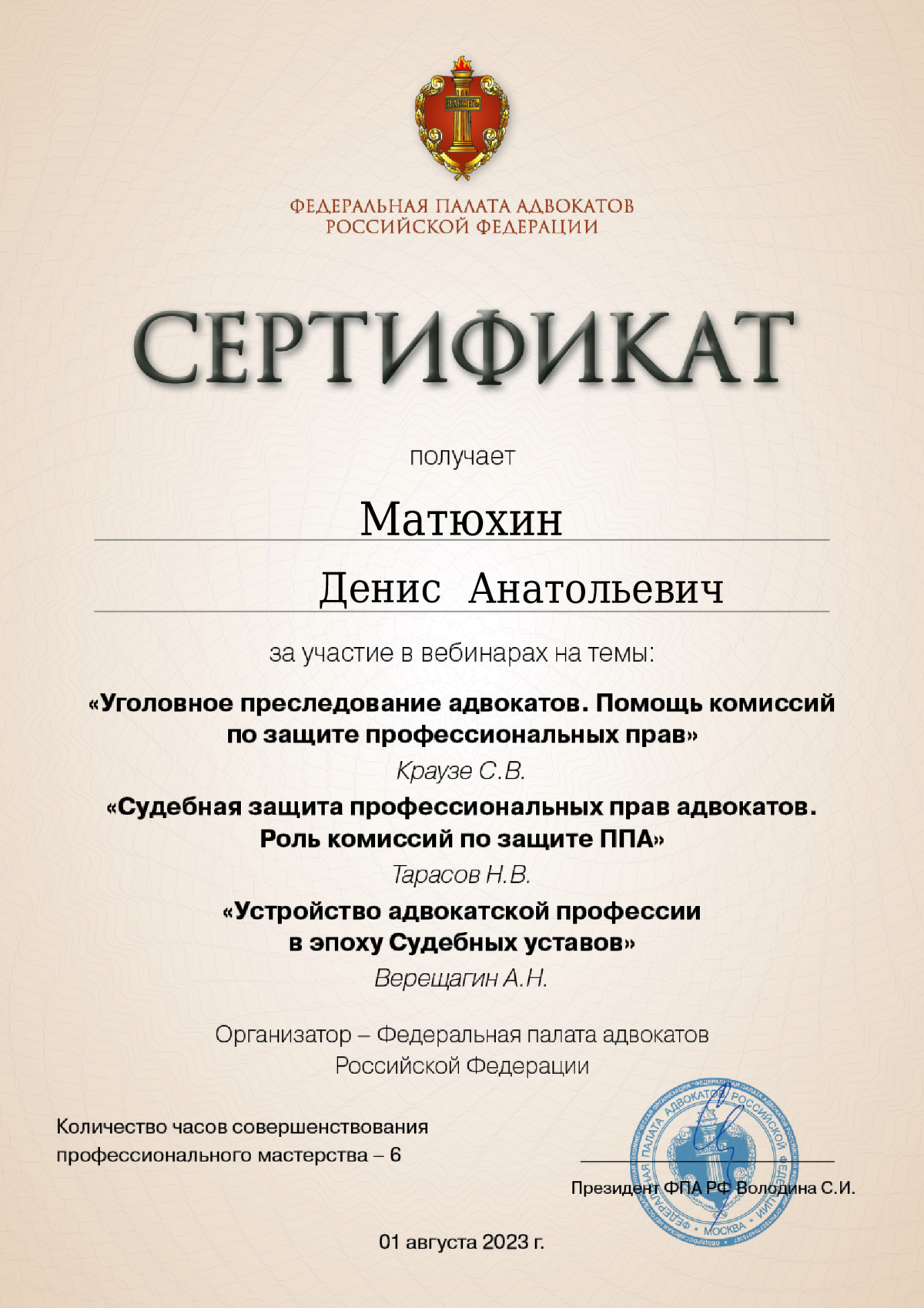 Профессия адвоката, несмотря на многолетний опыт, для меня не просто работа - это мое любимое занятие! Мое хобби! Творчество, которое позволяет словно скульптор, создавать из куска бесформенной глины изящные произведения искусства! Словно художник, творить на холсте, казалось бы, бессмысленными мазками, потрясающие шедевры, которые будут восхищать удивленных зрителей! Все эти подмастерья знают как и чем творить. Понимают законы экспозиций, пропорций, сечения. Имеют инструменты, которые необходимы для работы. Знают где найти нужный им материал. Как у этих подмастерьев у меня есть знания, инструменты и материал для работы с вашей проблемой! Мой опыт позволяет спрогнозировать каким образом будет разрешаться ваша проблема. Мне нравится помогать своим доверителям в вопросах уголовного преследования, семейных спорах, спорах на работе. Очень надеюсь, что обратившись ко мне, у нас с вами получится добиться, поставленных целей!