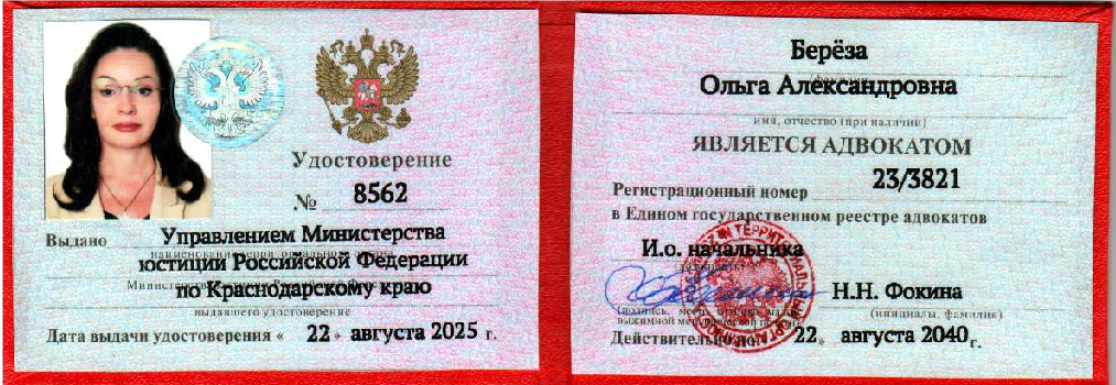 Ольга Александровна Председатель Коллегии адвокатов Краснодарского края «Берёза и Партнёры»