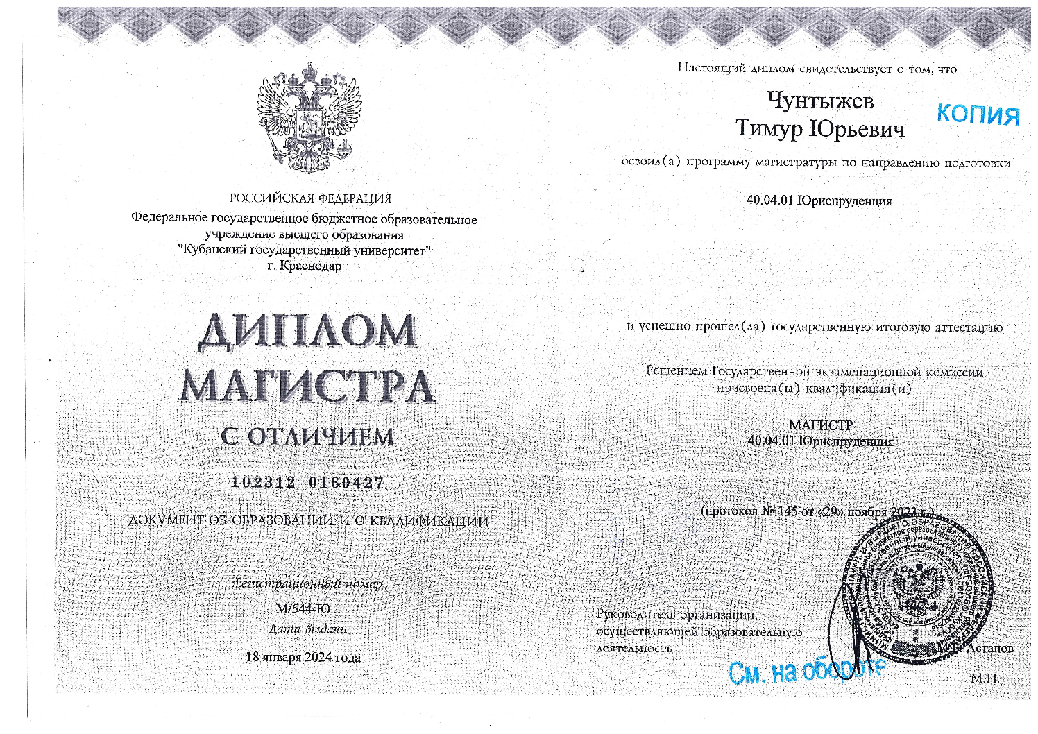 Кубанский государственный университет — Юриспруденция — Краснодар Магистр