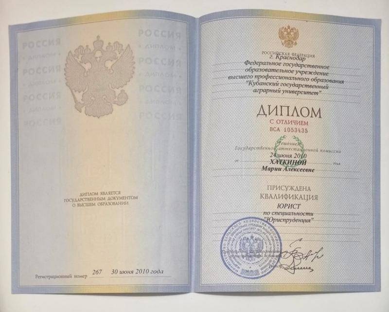 Приветствую! Я – Хаткина Мария Алексеевна, опытный юрист со стажем более 12-ти лет. С отличием окончила Кубанский государственный аграрный университет по специальности «Юриспруденция». Карьеру юриста начинала в органах внутренних дел, затем перешла в защиту прав потребителей и предпринимателей, более 10-ти лет проработав правозащитником в общественных организациях, осуществляя представление интересов граждан, ИП и юрлиц на досудебной стадии, в судах общей юрисдикции а также в арбитраже по самым разным категориям гражданских дел. Неоднократно привлекалась в качестве эксперта для интервью на телевидении, длительное время вела рубрику “Школа грамотного потребителя” в печатных изданиях “Аргументы недели” и “Кубань сегодня”. В настоящий момент осуществляю частную юридическую практику в максимально гибких и комфортных для клиентов условиях.
