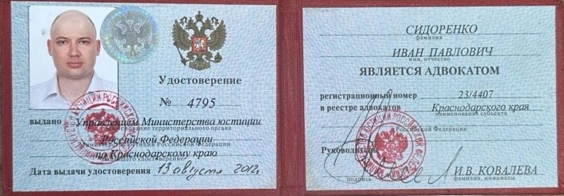 Я, адвокат Сидоренко Иван Павлович, оказываю профессиональную юридическую помощь с 2001 года. Могу помочь в решении трудовых, наследственных, семейных, земельных и пенсионных споров. Также я занимаюсь вопросами возмещения вреда здоровью и материального ущерба, взысканием стоимости восстановительного ремонта в результате ДТП и другими административными, гражданскими и арбитражными делами.
