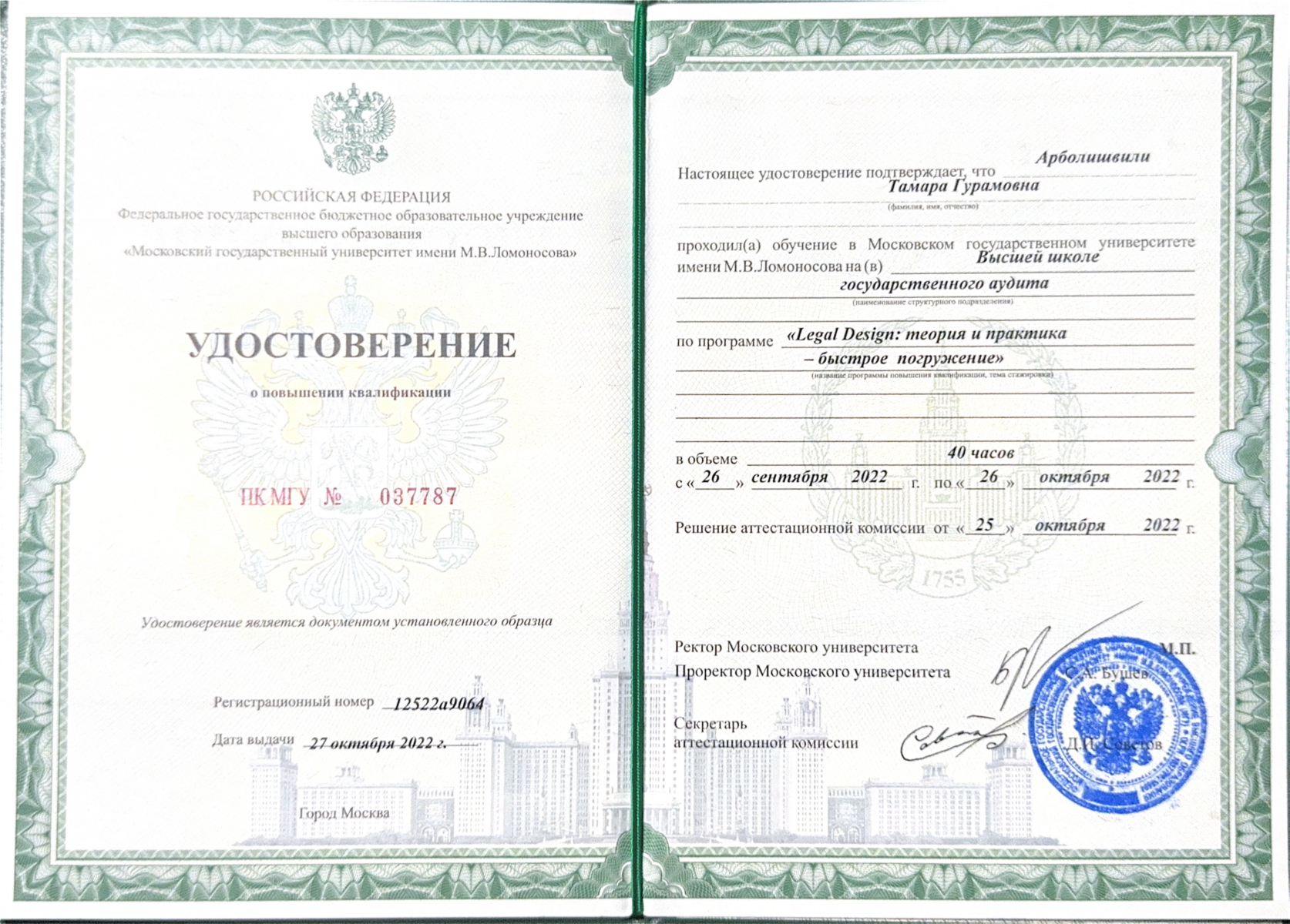 Список судебных дел в карточке юриста может быть не полным и зависит от того, указан ли юрист Арболишвили Тамара Гурамовна в деле или нет