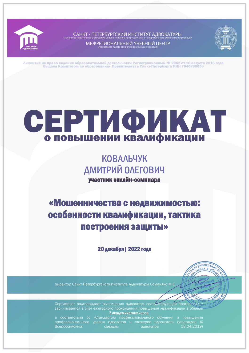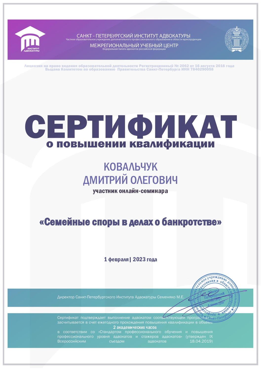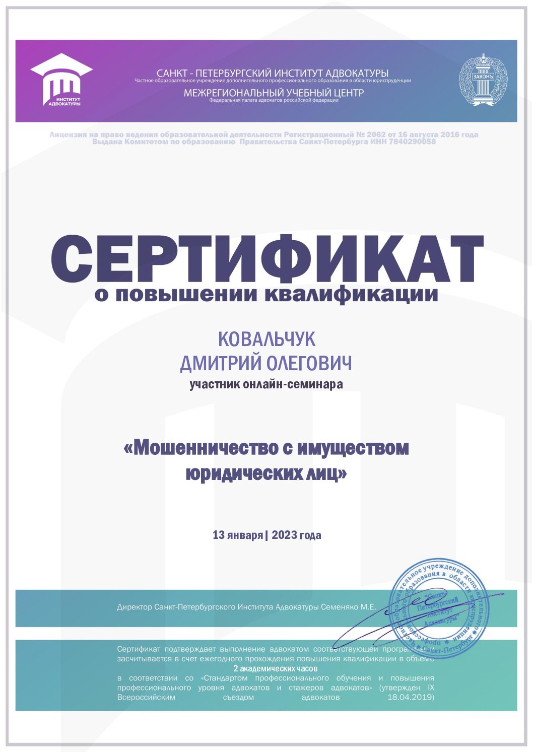 Кандидат юридических наук, действующий адвокат. Стаж юриста 23 года. Статус адвоката 7 лет. Защищаю по сложным гражданским, арбитражным и уголовным делам. Заключаю соглашение. Оказываю квалифицированную юридическую помощь от Камчатки до Калининграда. Храню адвокатскую тайну. Формат онлайн сильно экономит Ваше время и Ваши деньги. Консультирую. Составляю иски, жалобы, отзывы, возражения, ходатайства. Защищаю в судах и на следствии. 1) Гражданский процесс: раздел имущества и долгов, алименты и порядок общения с детьми, раздел наследства, возмещения вреда, медицинские споры. 2) Арбитражный процесс: неосновательное обогащение, споры о поставке товаров, споры об оказании услуг, споры с энергосбытом, банкротство 3) Уголовный процесс: Защита на следствии и в суде. Наркотики. Преступления против жизни и здоровья. Экономические преступления. Преступления против собственности. Компьютерные преступления. Экологические преступления. УДО