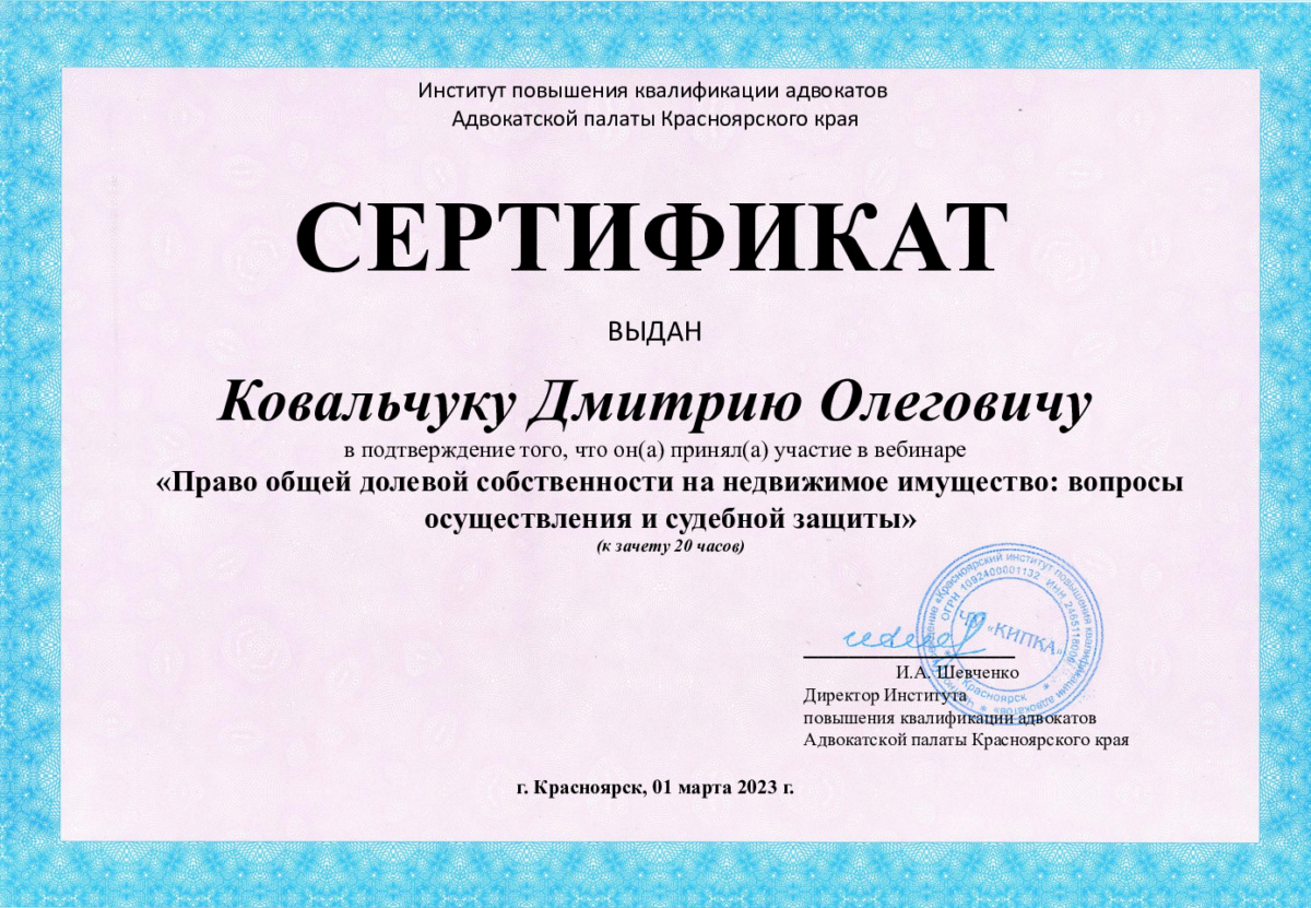 Адвокат Красноярской краевой коллегии адвокатов "Содружество".