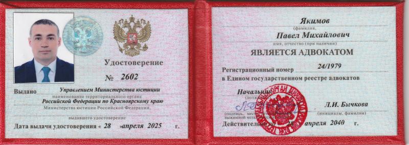 Адвокат Красноярской краевой коллегии адвокатов “Содружество”.