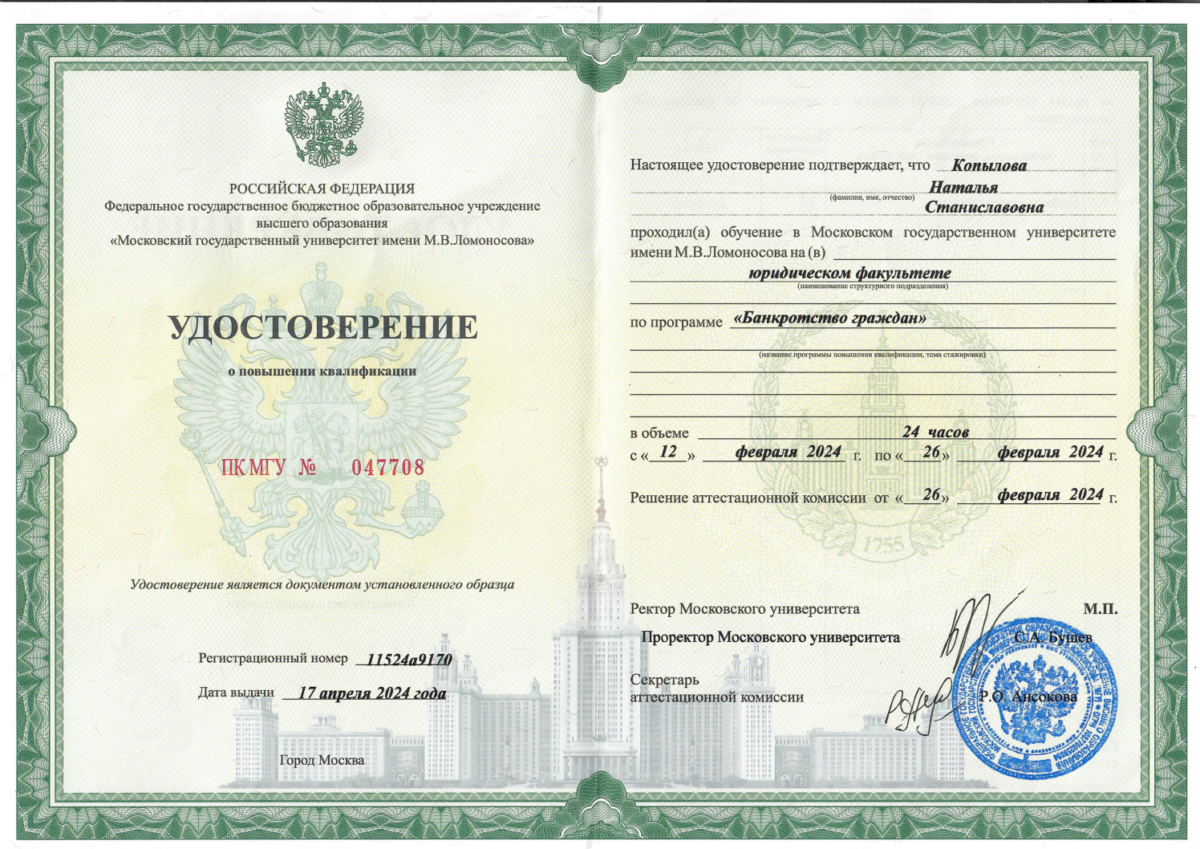 Специализация: Банкротство (ФЛ/ЮЛ), наследственное, семейное право, арбитражные споры.
