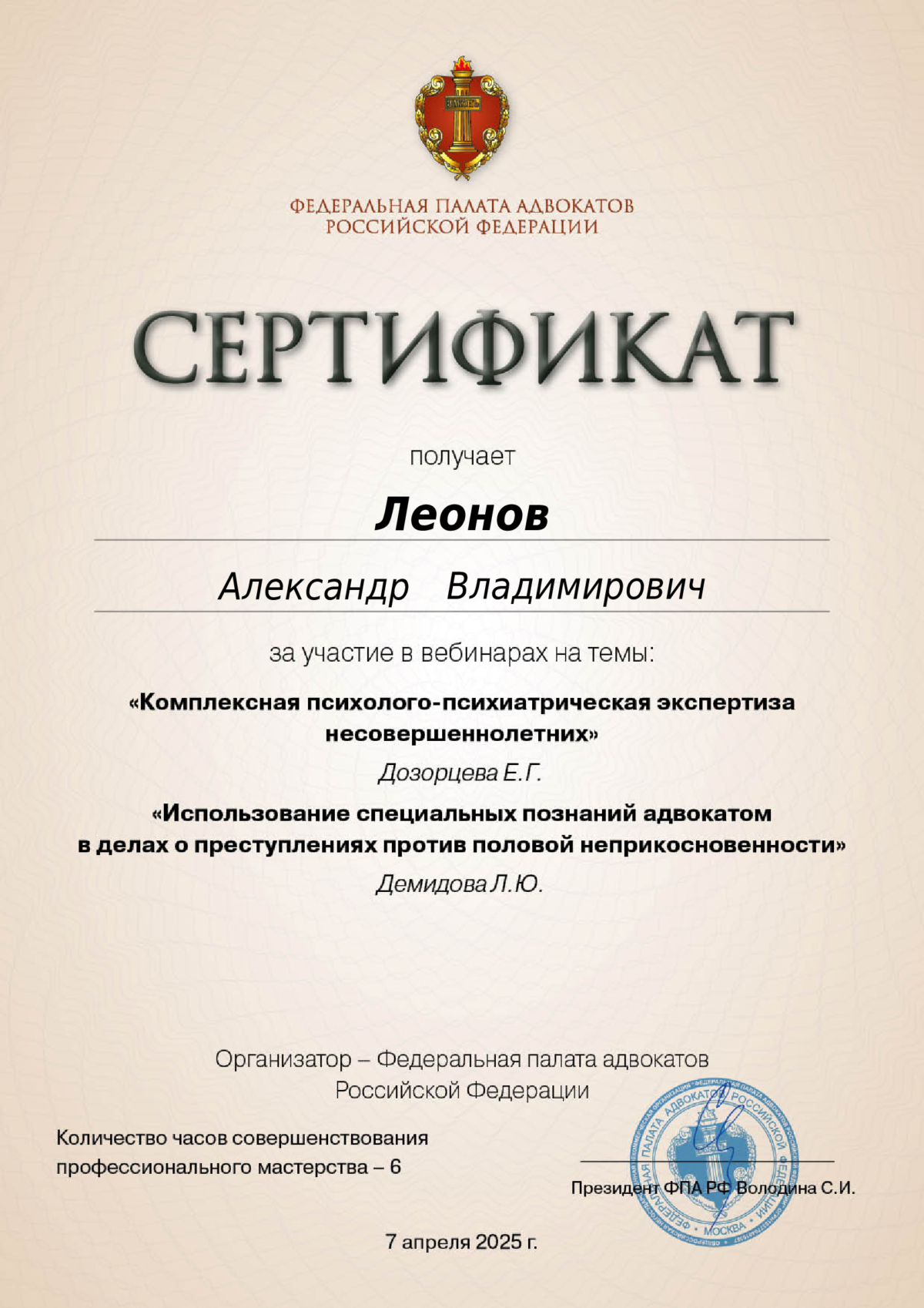 Квалифицированная юридическая помощь физическим и юридическим лицам: - защита по уголовным делам и делам об административных правонарушениях на любой стадии, представление интересов потерпевших; - представление интересов по гражданским делам в судах и любых других органах; - составление исковых заявлений, жалоб, претензий, договоров и других документов; - узаконивание перепланировок и самовольных построек; - взыскание ущерба, в том числе со страховых компаний по договорам ОСАГО и КАСКО, а также с управляющих компаний, соседей в результате залития, пожара и т.д.; - помощь при вступлении в наследство, наследственные споры в судах; - консультации; - другие юридические вопросы. Стаж работы адвокатом с 2010 года!