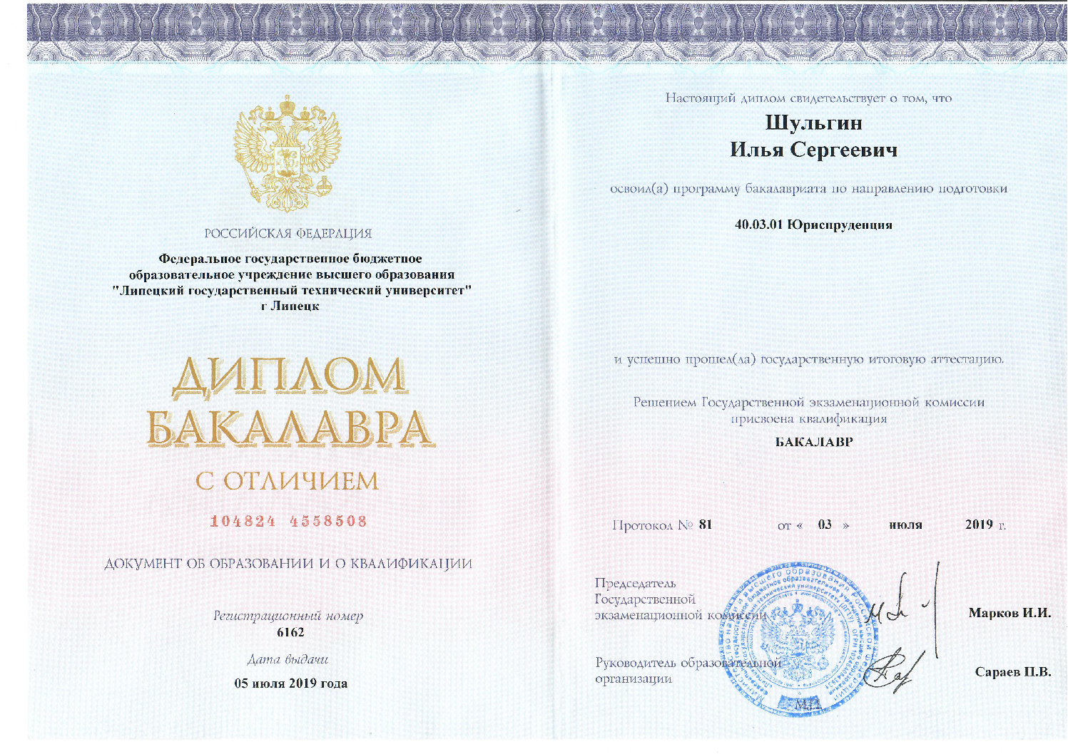 В 2003 году присуждена квалификация юрист по специальности «Юриспруденция». Более 20 лет отработал на госслужбе. В настоящее время успешно занимаюсь юридической практикой.