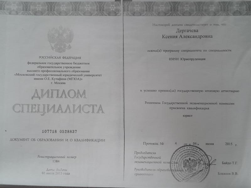 МГЮА — Московский государственный юридический университет имени О.Е. Кутафина — Юриспруденция — Москва Специалист