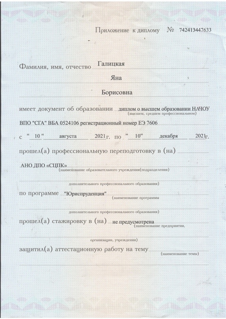 Высшее юридическое образование, диплом Московского университета. Являюсь...