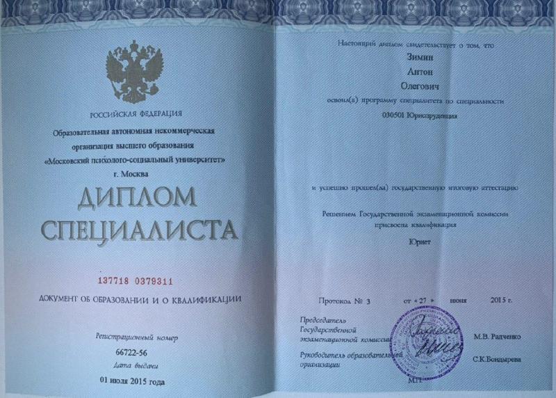 Высшее юридическое образование, диплом Московского университета. Являюсь...