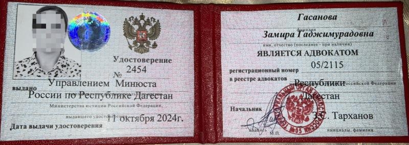 Мой регистрационный номер в реестре адвокатов АП РД — 05/1758.