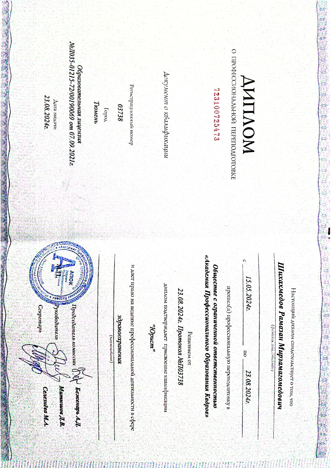 В 2013 году я окончил Северо-Кавказский филиал Российской правовой академии Министерства юстиции Российской Федерации по специальности “Юрист”. С тех пор я активно занимаюсь юридической практикой, представляя интересы как юридических, так и физических лиц в судах общей юрисдикции и арбитражных судах. Мой непрерывный стаж работы составляет более 11 лет. Я применяю индивидуальный подход к каждому делу, всегда действуя в интересах клиента.