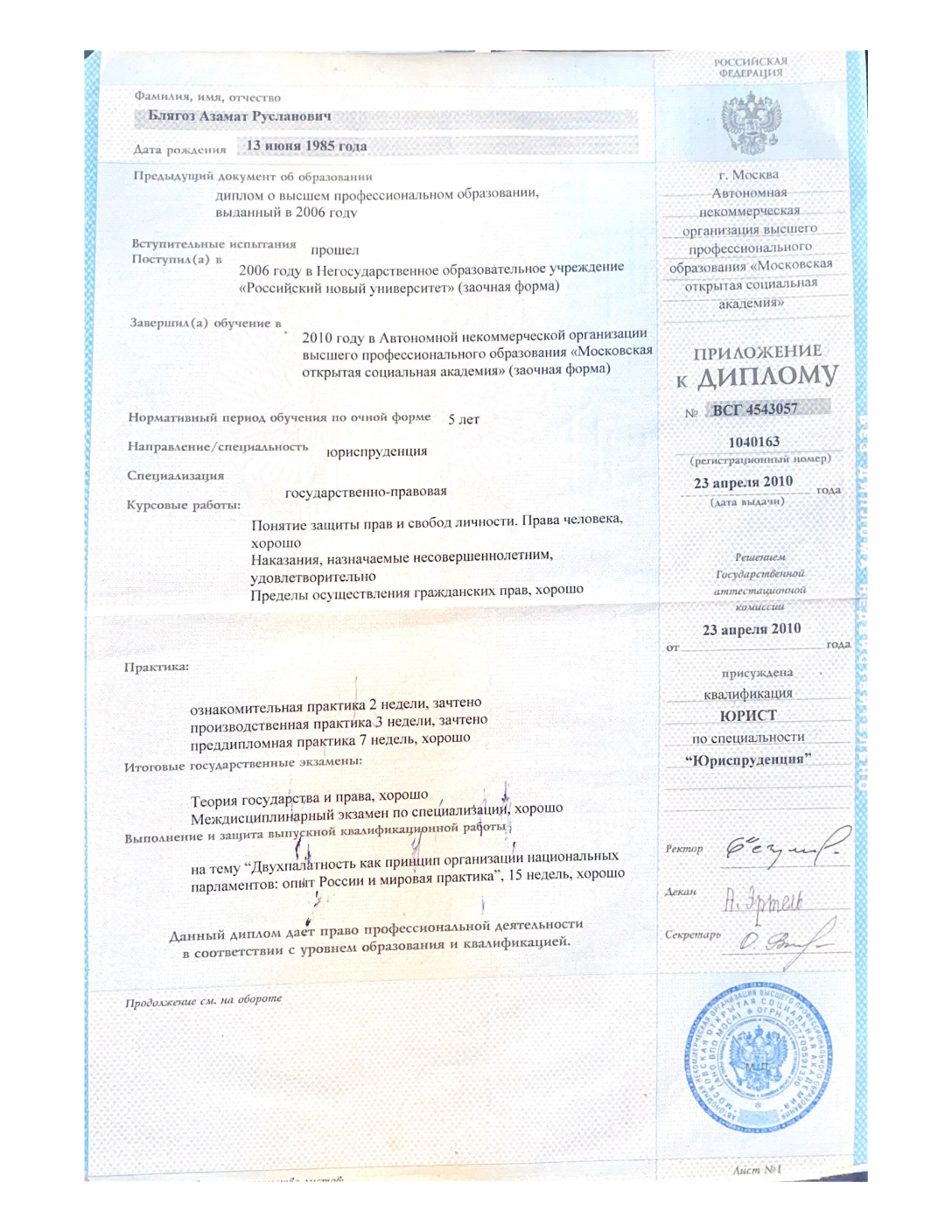 Московская открытая социальная академия — Юриспруденция — Москва Бакалавр