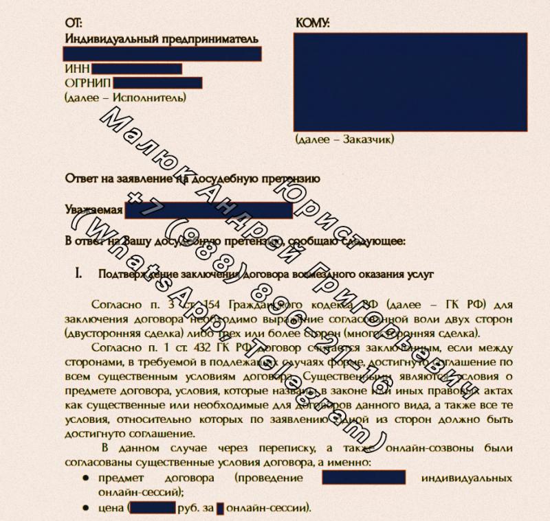 📘 Нужна помощь в составлении юридических документов (договоров, претензий, ответов на претензии, исковых заявлений, жалоб и т. д.)? Я анализирую документы и подготавливаю их для Вас.