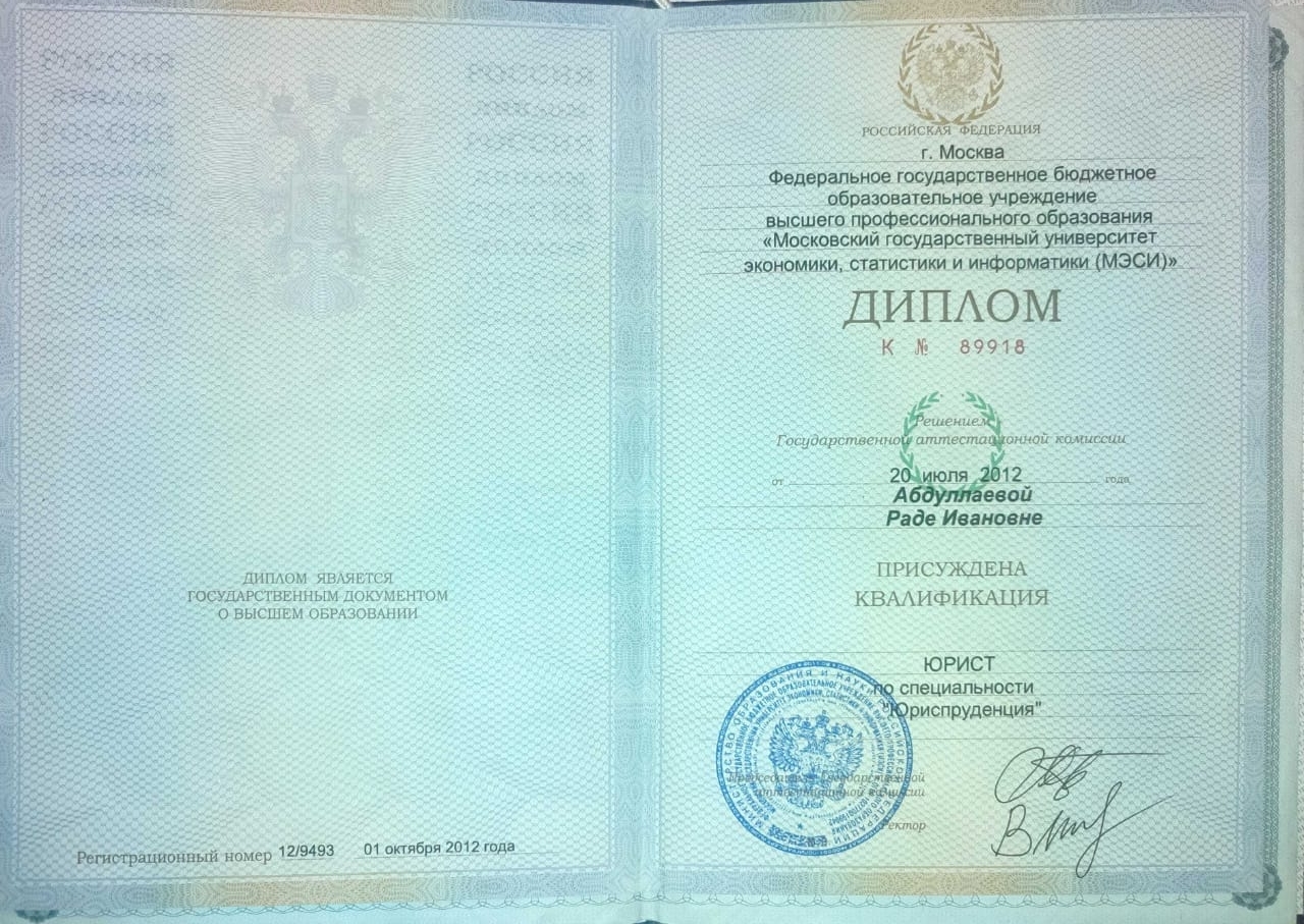Московский государственный университет Экономики Статистики и Информатики — Юриспруденция — Москва Специалист