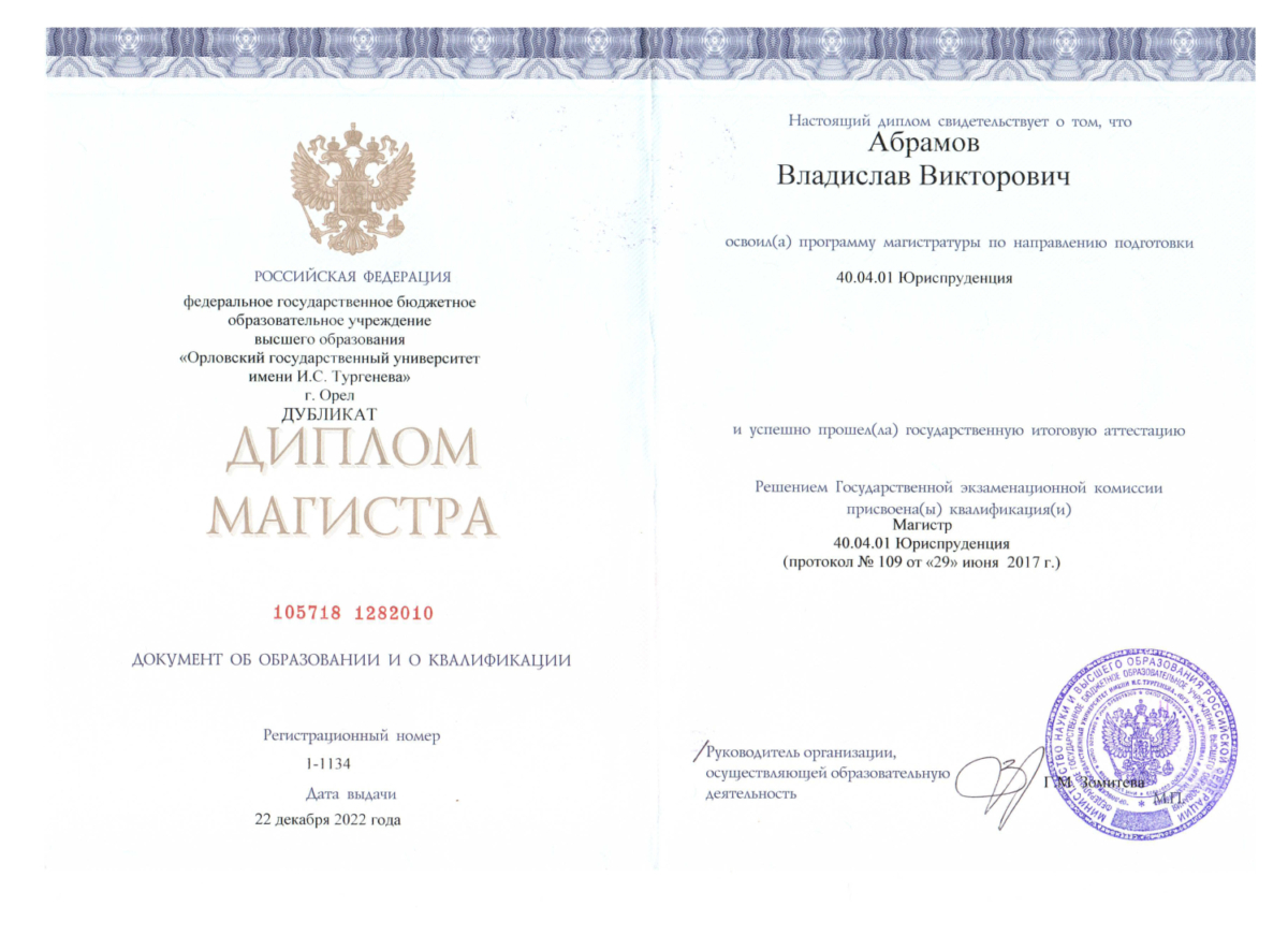 Обращался по гражданскому делу к Абрамову Владиславу Викторовичу, быстро помог оформить обращение. Все сделал грамотно, профессионал св... Читать далее