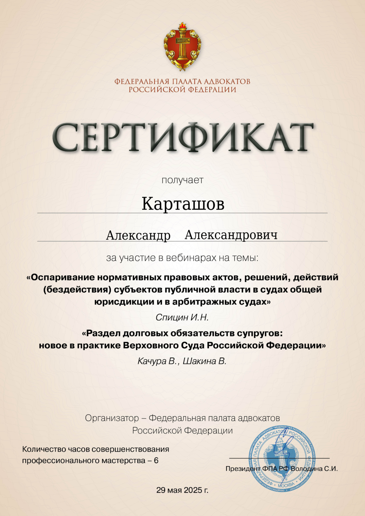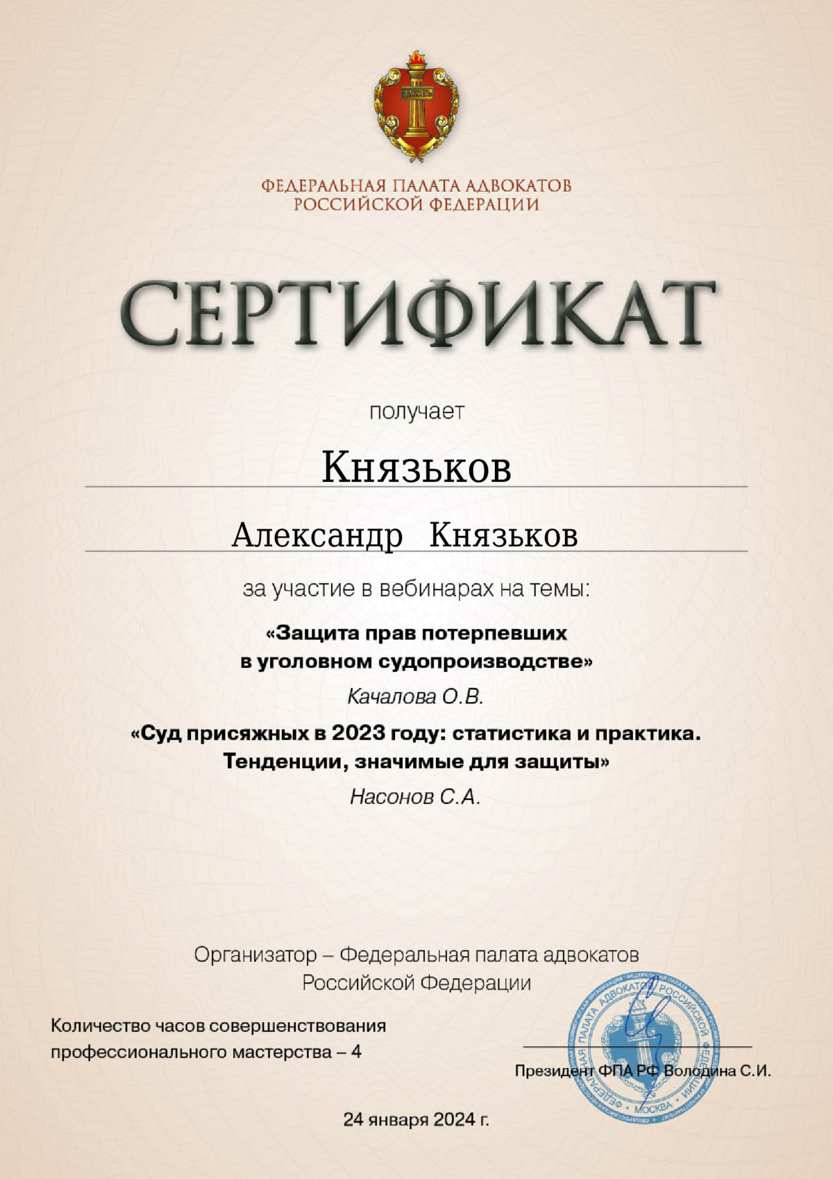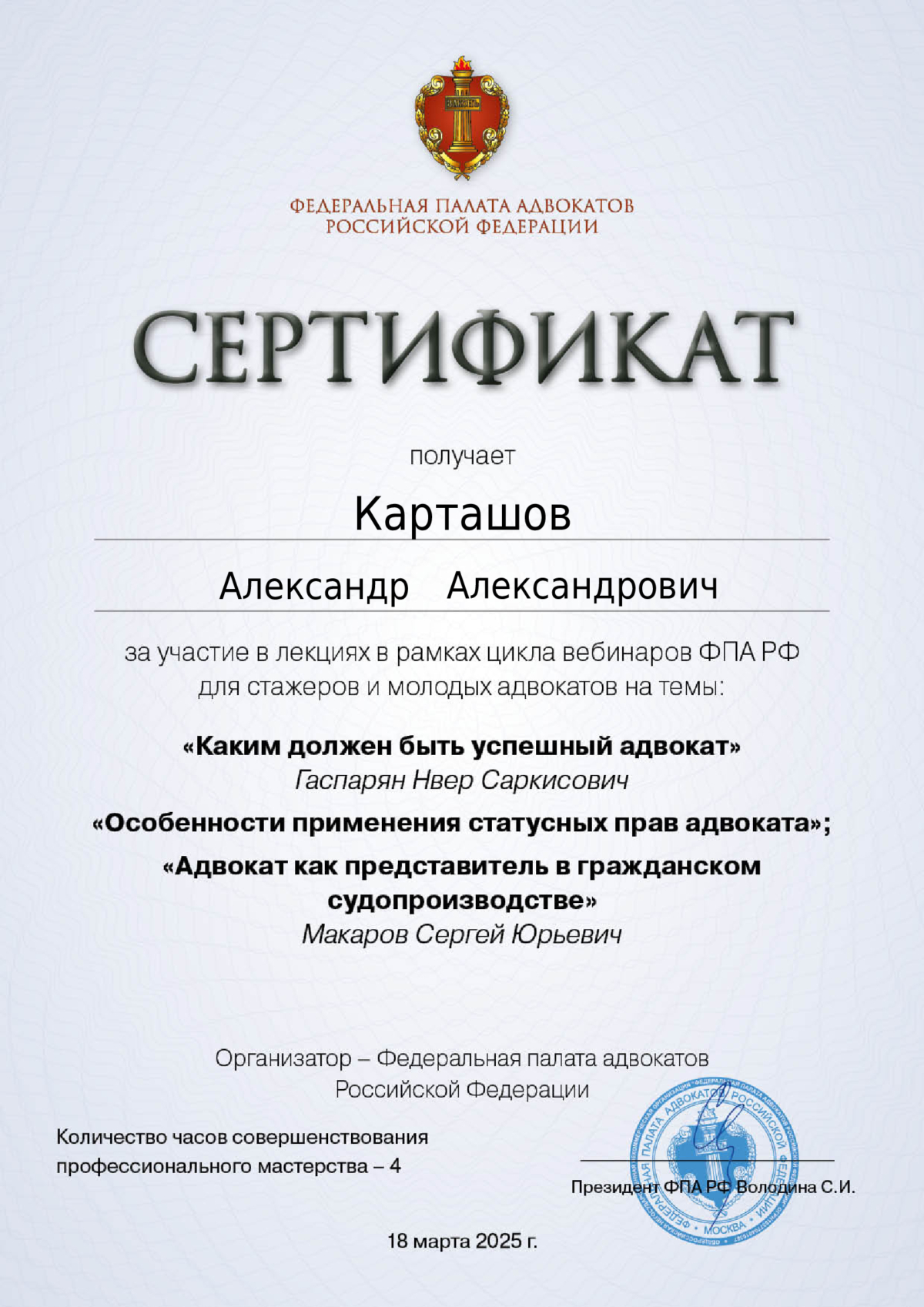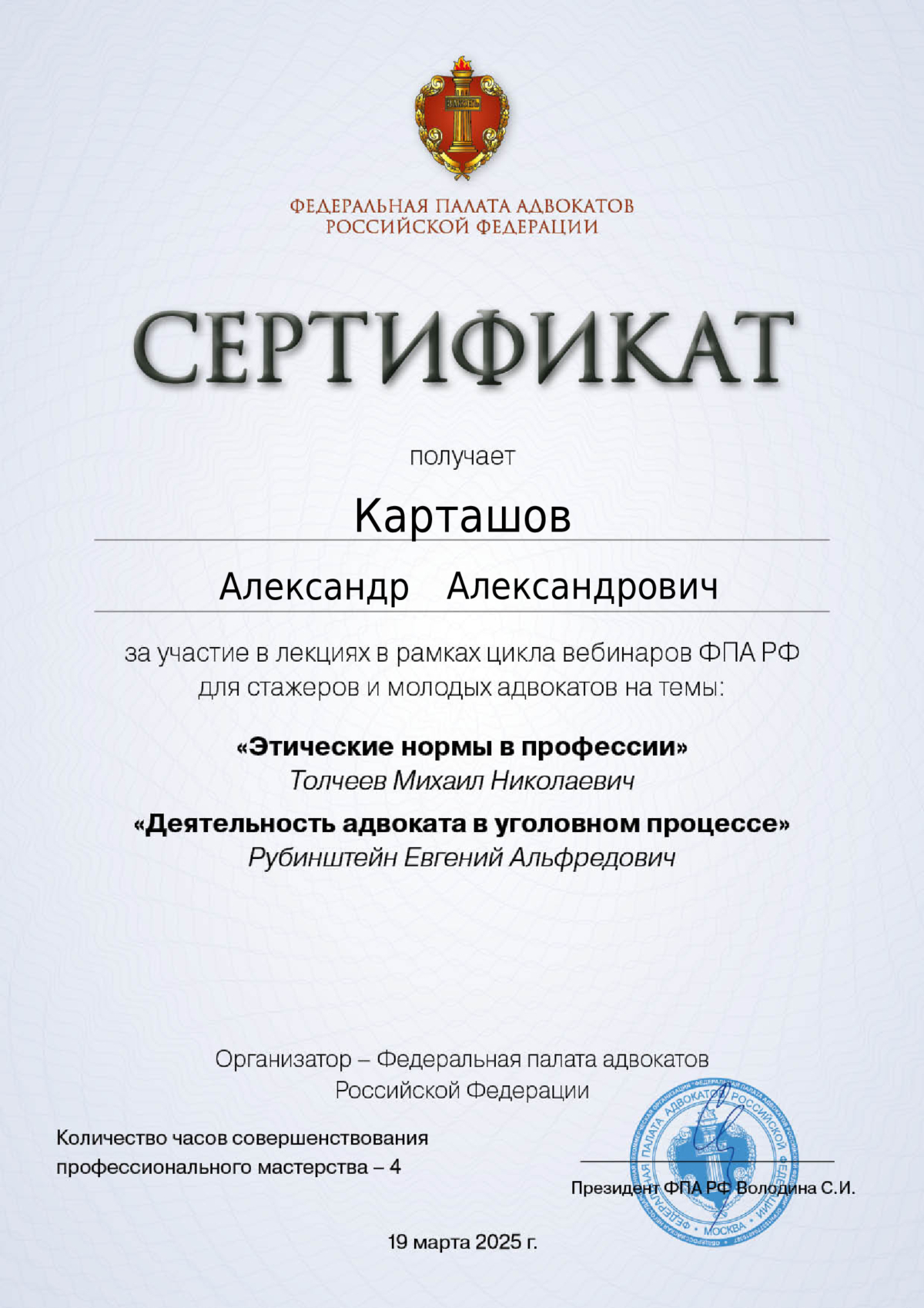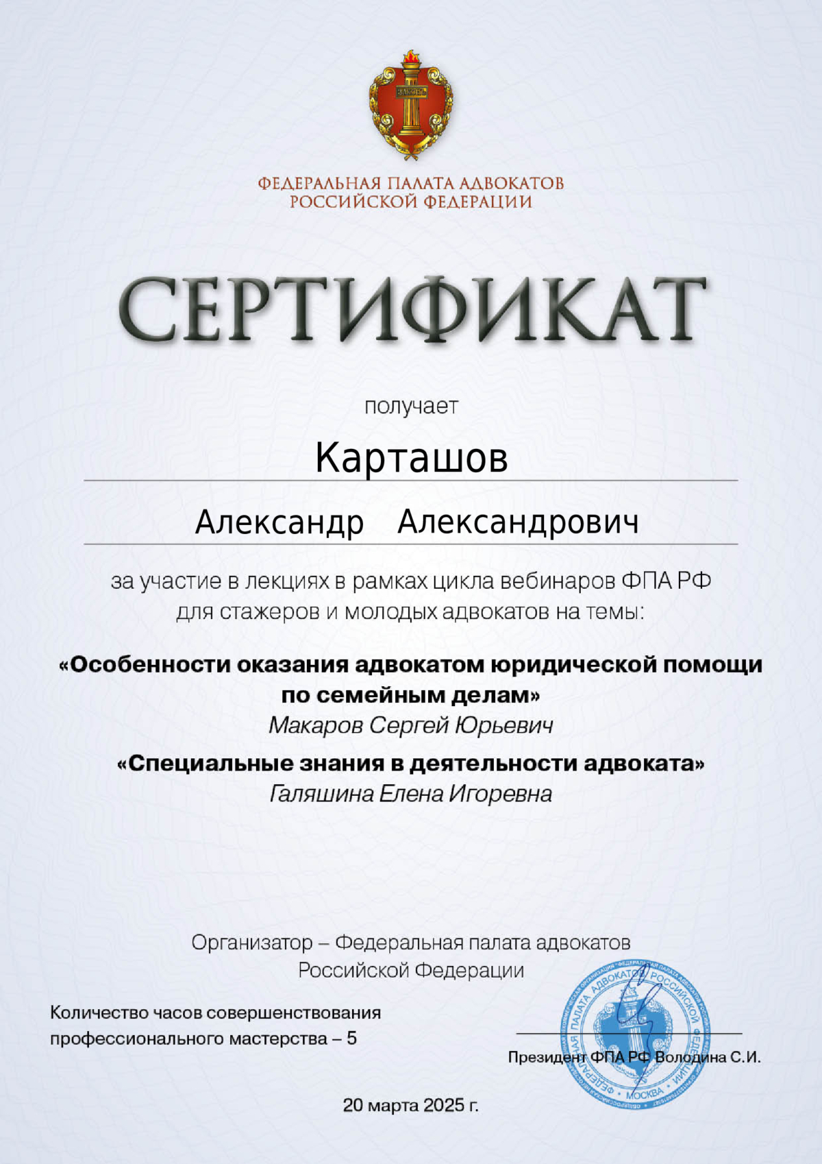 - Член Ассоциации юристов России