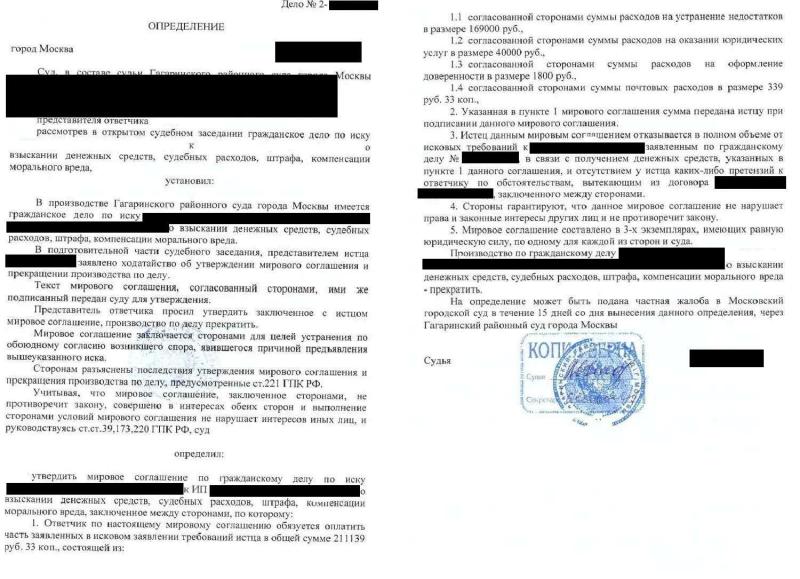 - Досудебное урегулирование По договоренности