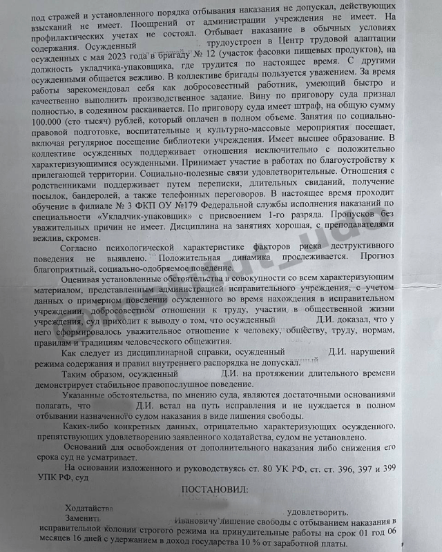 ◾ Cнижение срока наказания