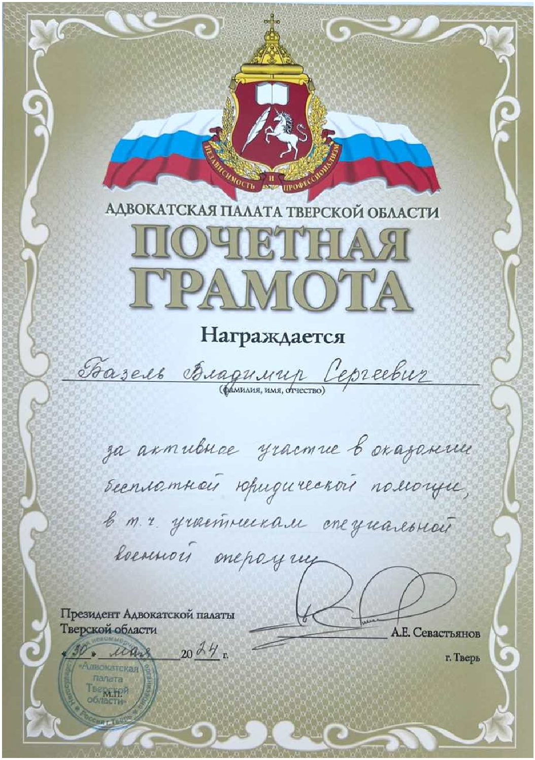 Моя работа строится на глубоком анализе правовой ситуации, стратегическом подходе к каждому делу и максимальной защите интересов клиента. Я ценю доверие, которое оказывают мне доверители, и всегда отстаиваю их права, опираясь на закон и судебную практику.
