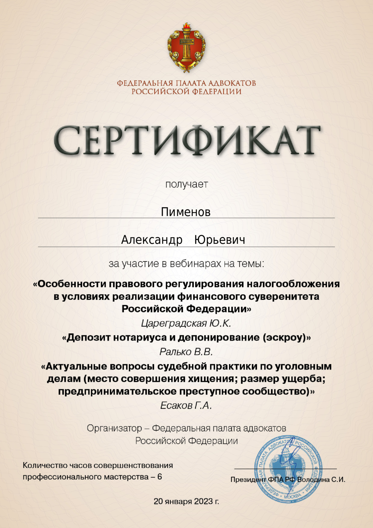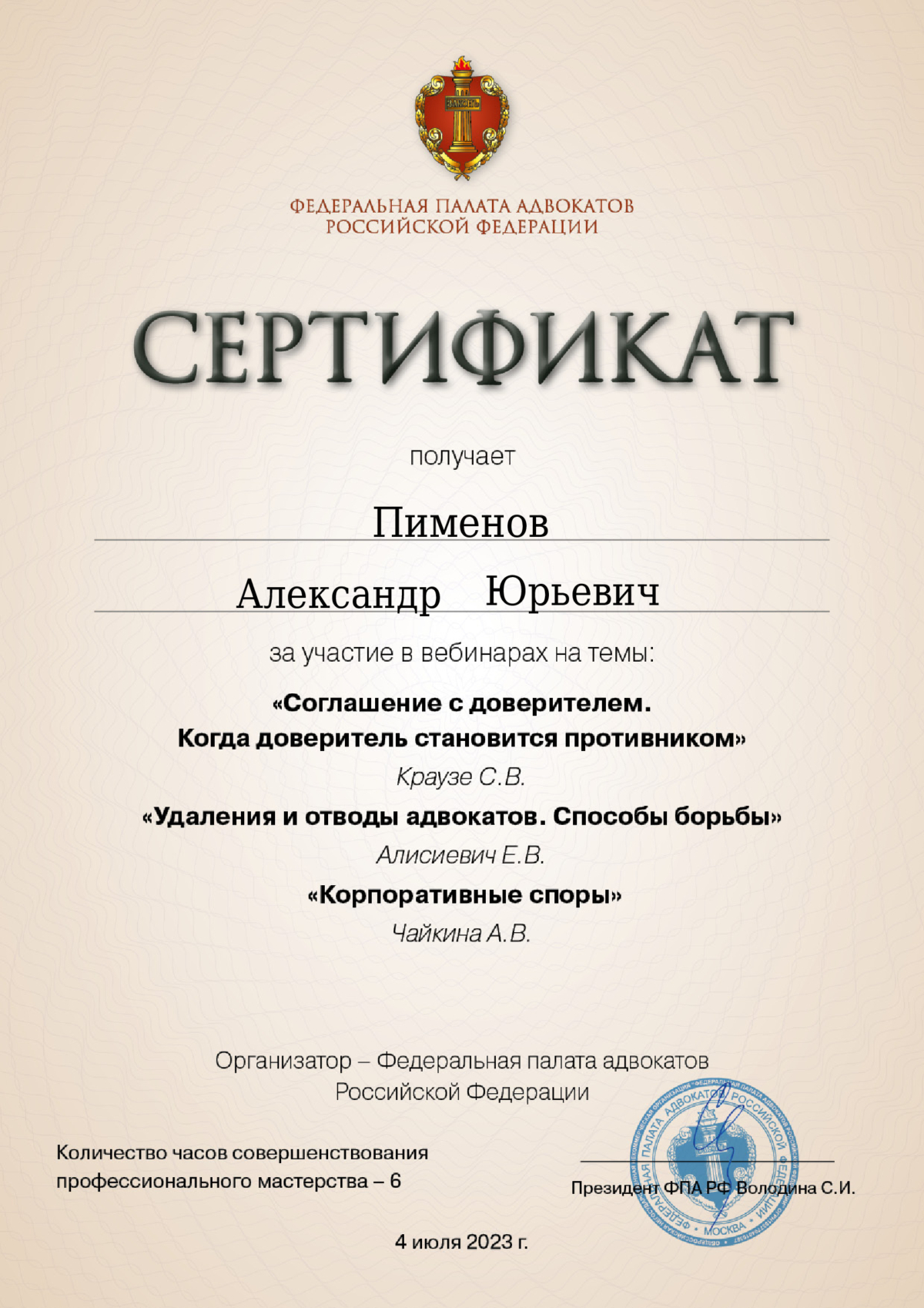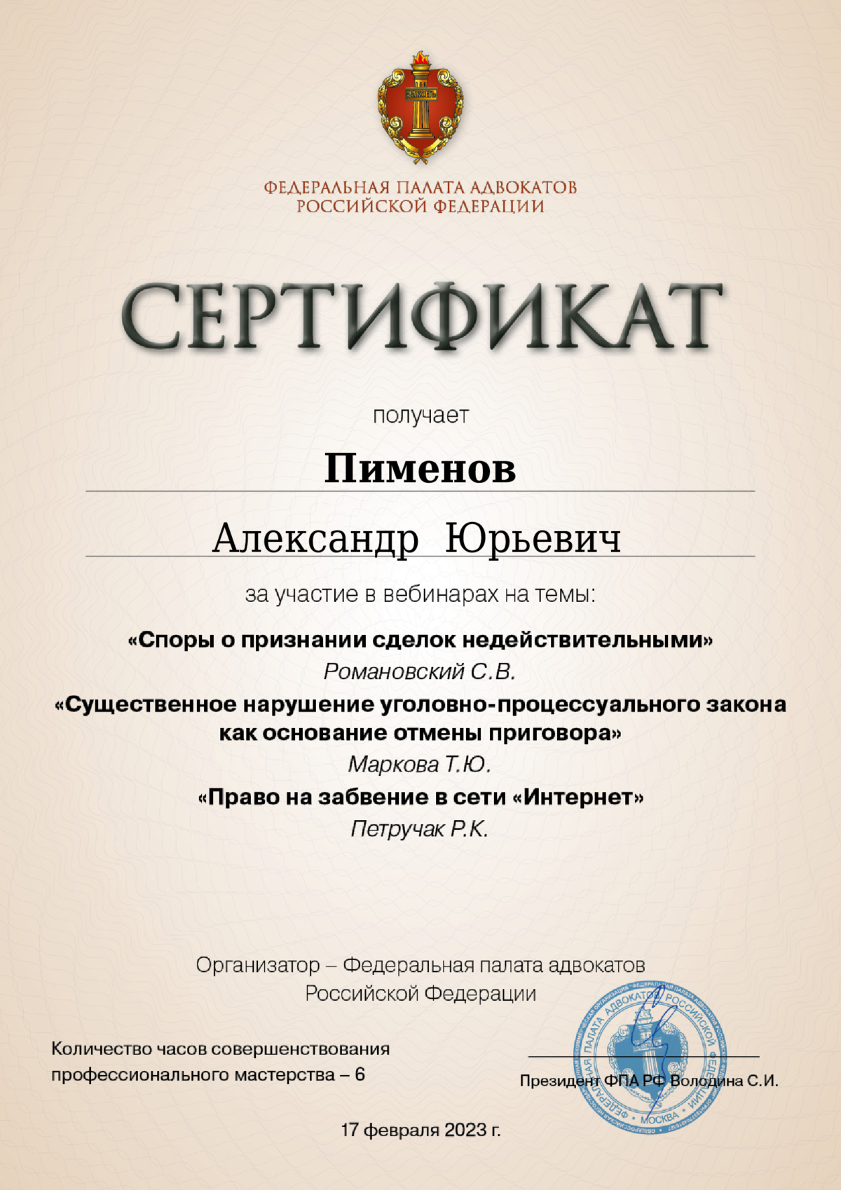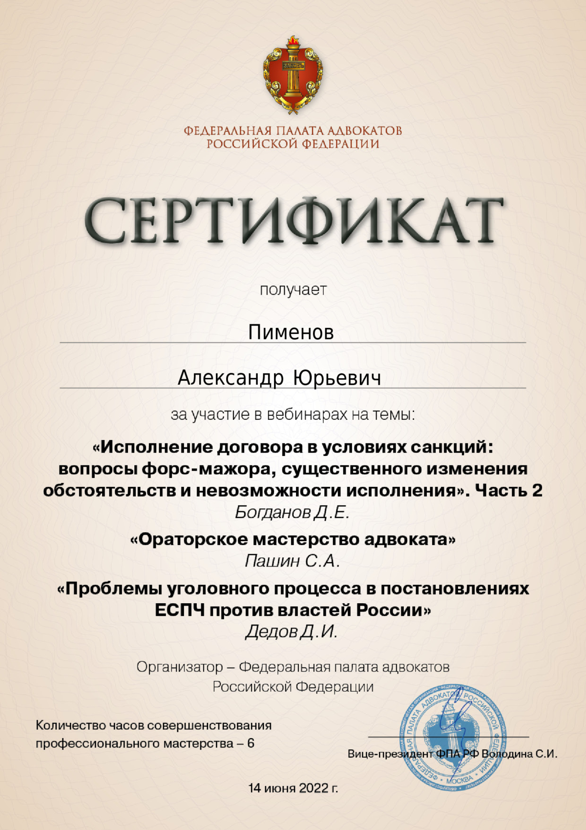 - Член Ассоциации юристов России
