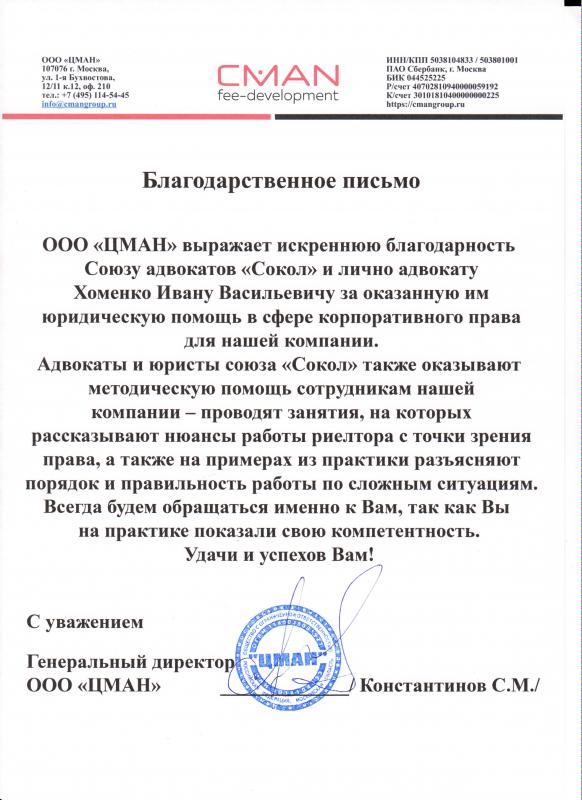 Отзывы обо мне говорят сами за себя. Мой главный принцип в работе — действовать в интересах клиента, как если бы это были мои собственные интересы. Я опытный судебный юрист и всегда готов помочь вам!