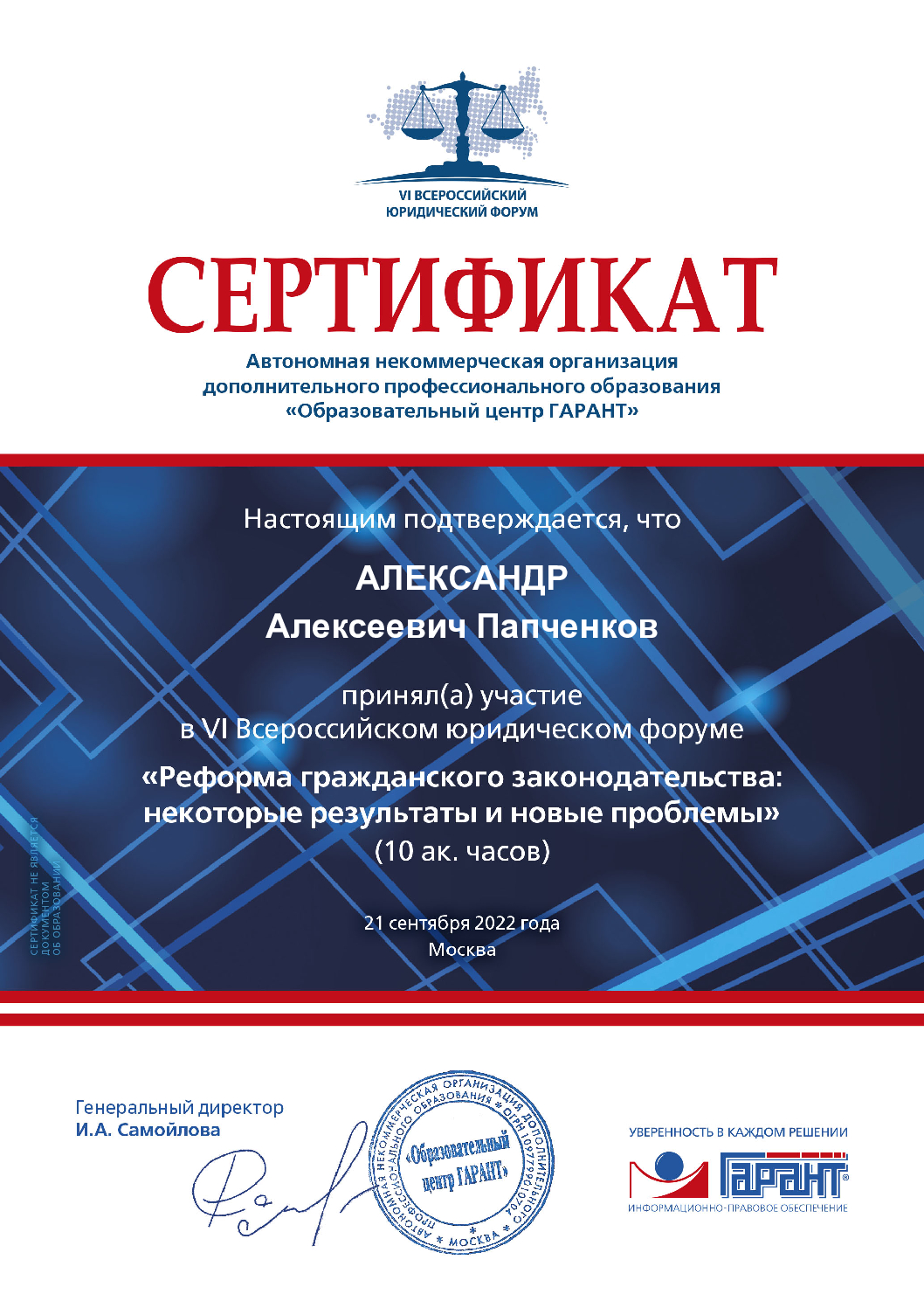 Адвокат АП г. Москвы (рег.№ 77/10157). Специализация:
