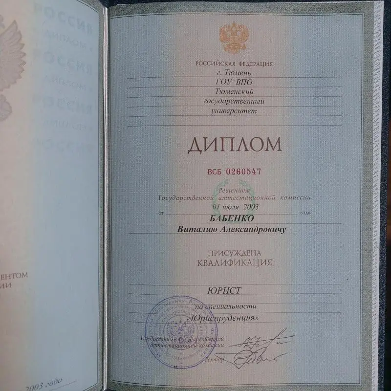 Бабенко Виталий Александрович, адвокат адвокатской палаты г. Москвы, является специалистом в области уголовного права и уголовного процесса. Более 20 лет юридического стажа. Значительный опыт службы в правоохранительных структурах в должностях следователя и оперативного сотрудника МВД РФ, выслуга более 15 лет. Раскрывал и расследовал все виды преступлений предусмотренные статьями 159-160 УК РФ (Мошенничество, Присвоение, Растрата), а также преступления предусмотренные статьями 228, 228.1, 229, 234 УК РФ (незаконный сбыт, хранение наркотических средств и.т.д.).