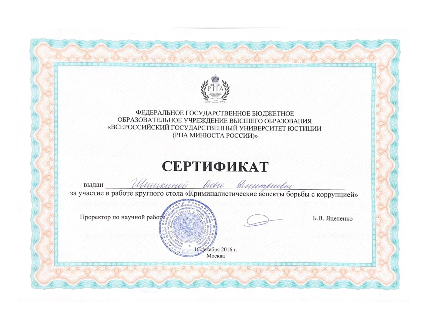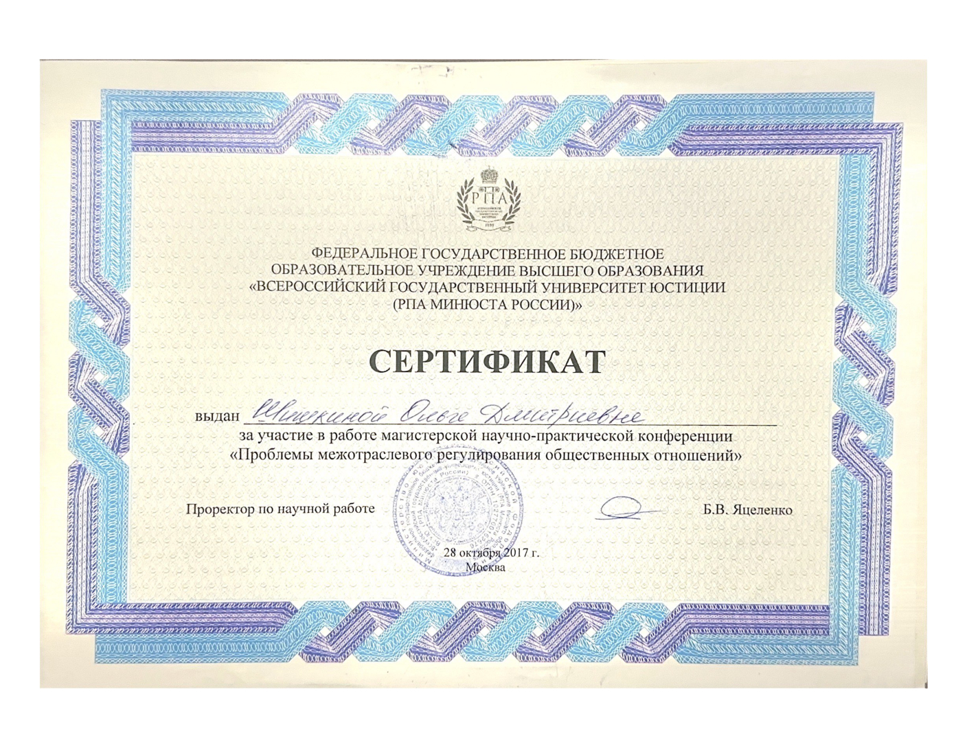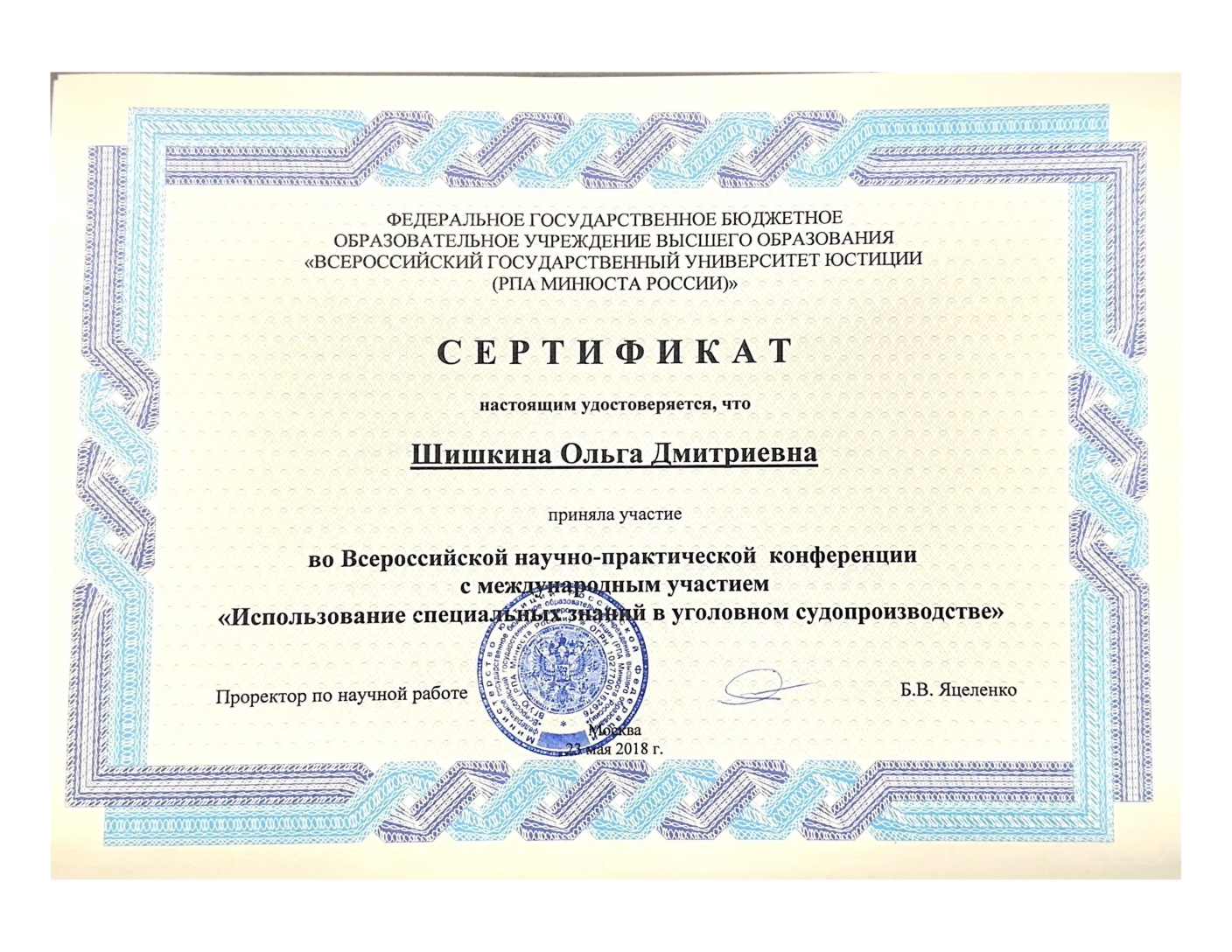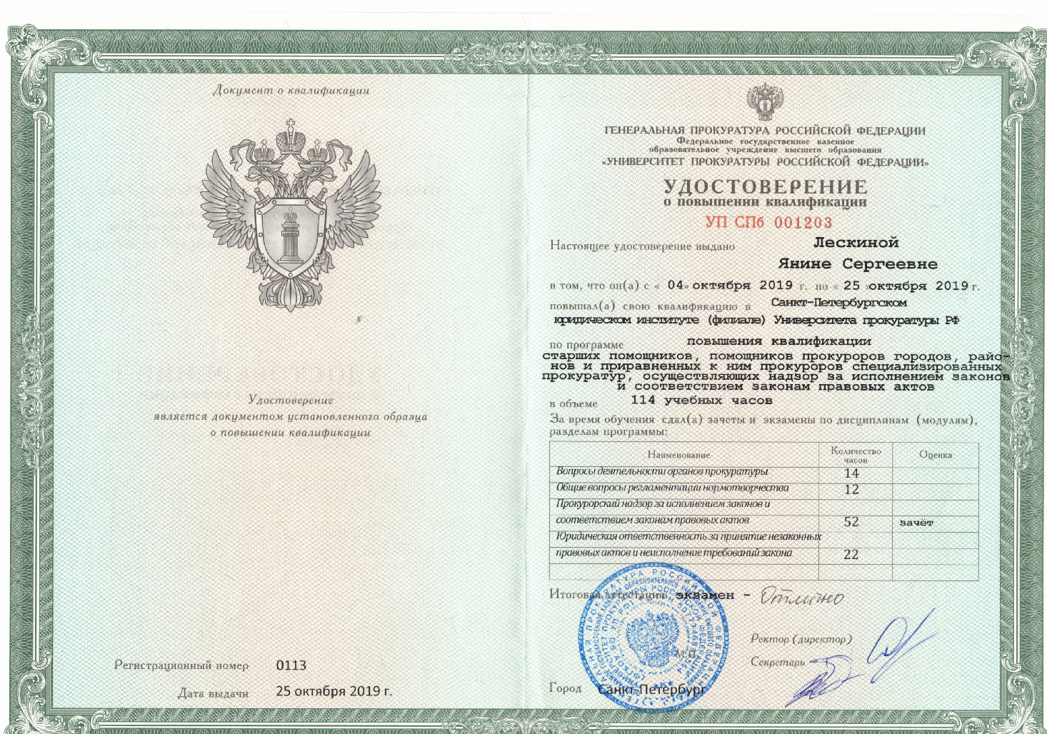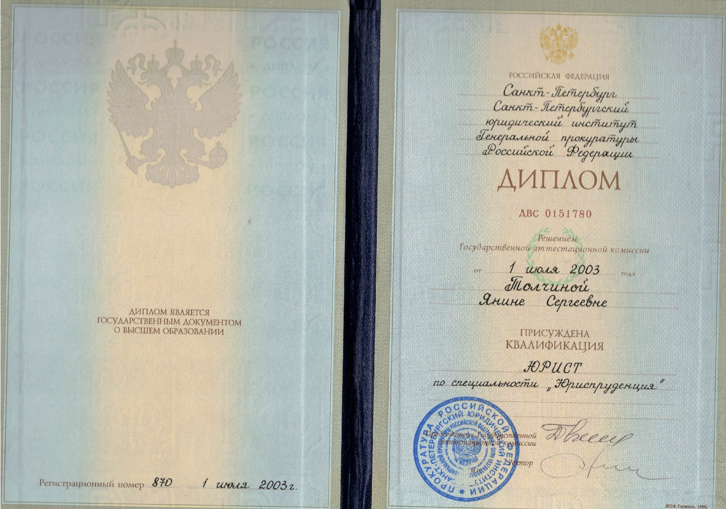 - Окончила Ставропольский филиал Краснодарского университета МВД России