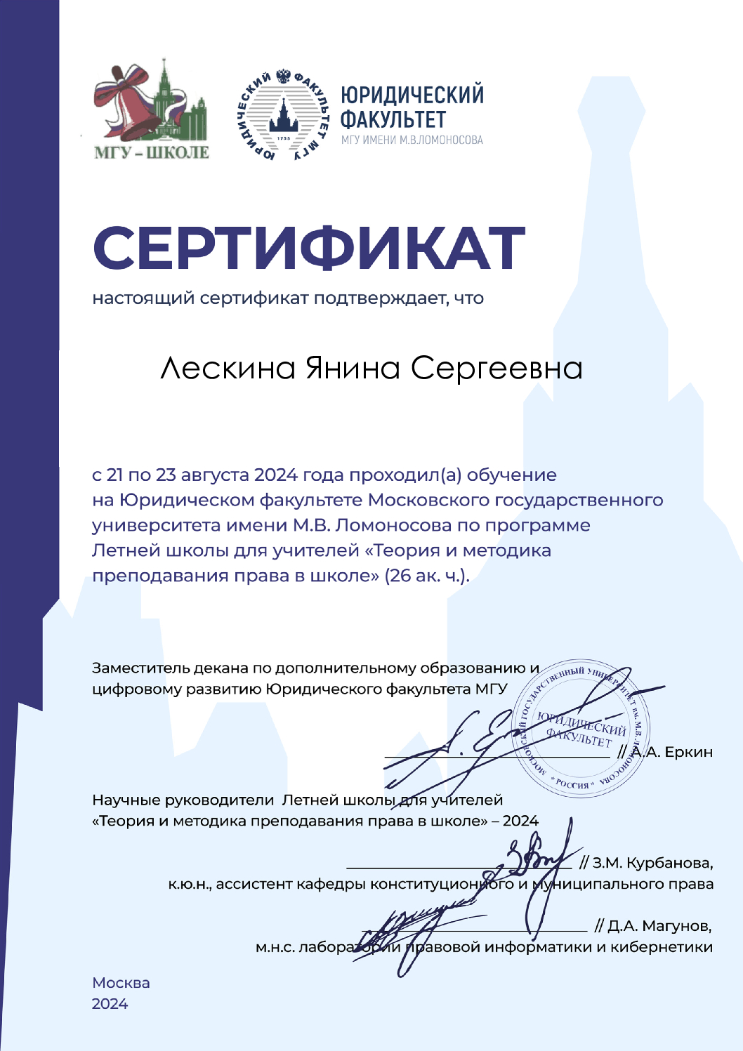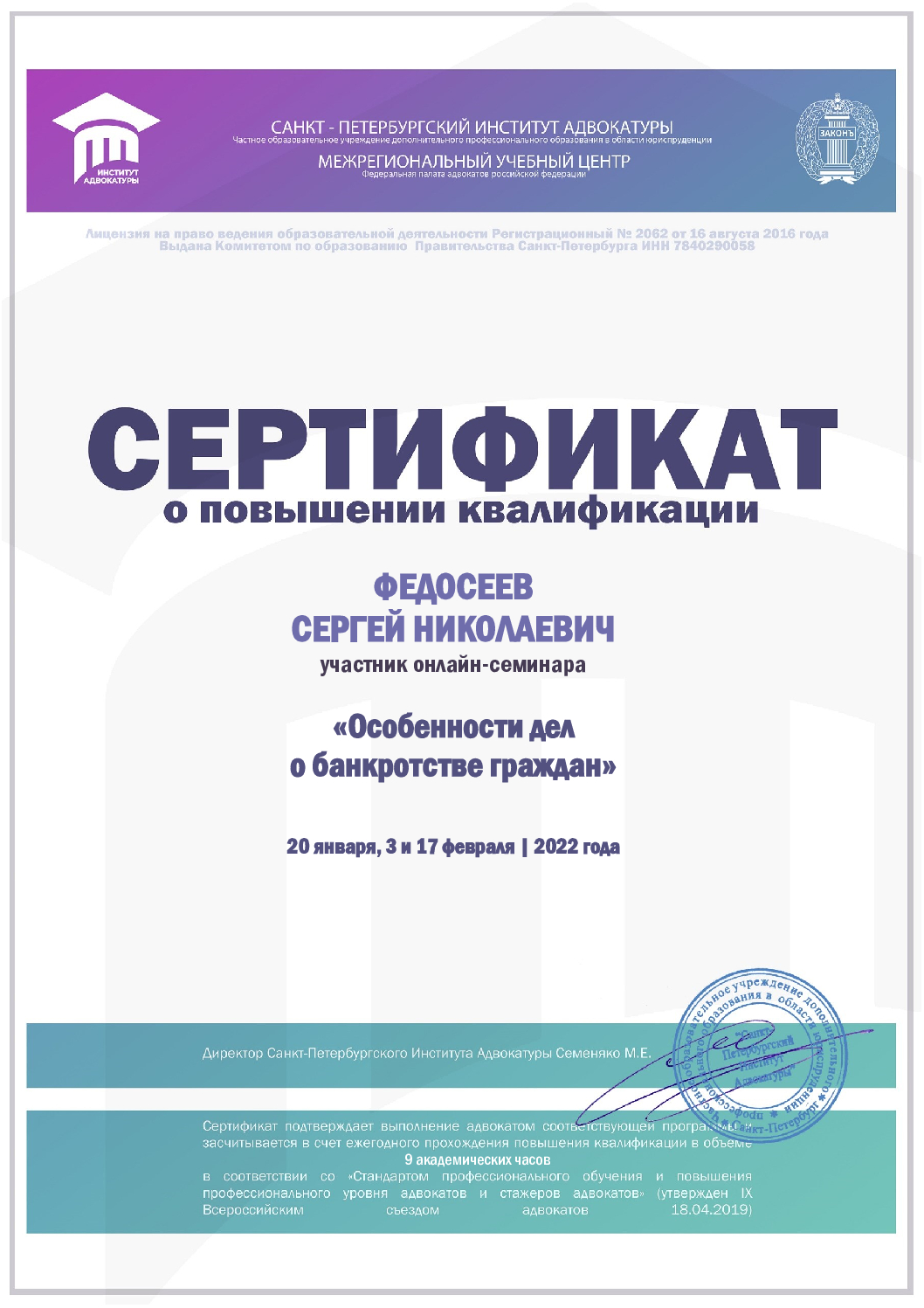 - Член Ассоциации юристов России