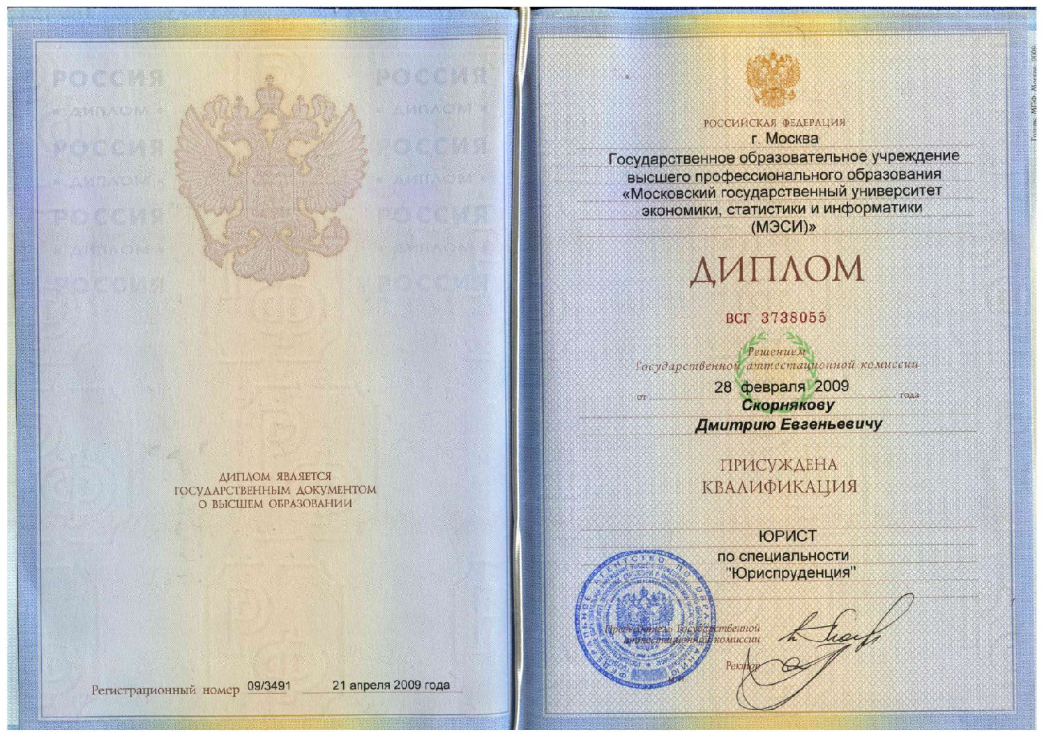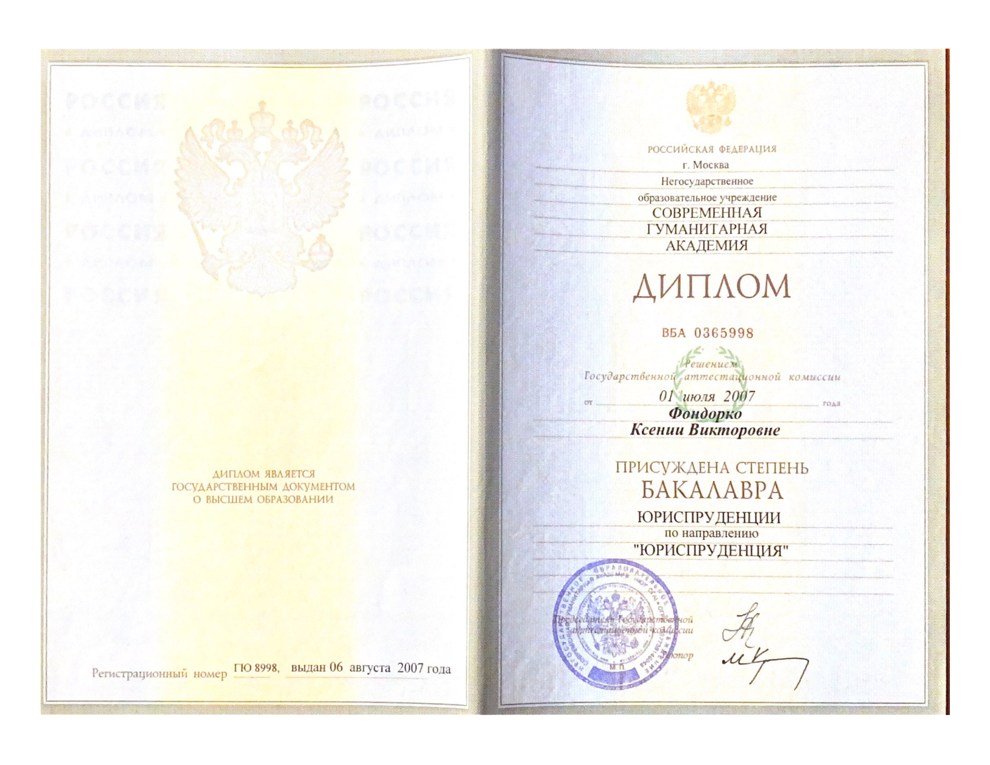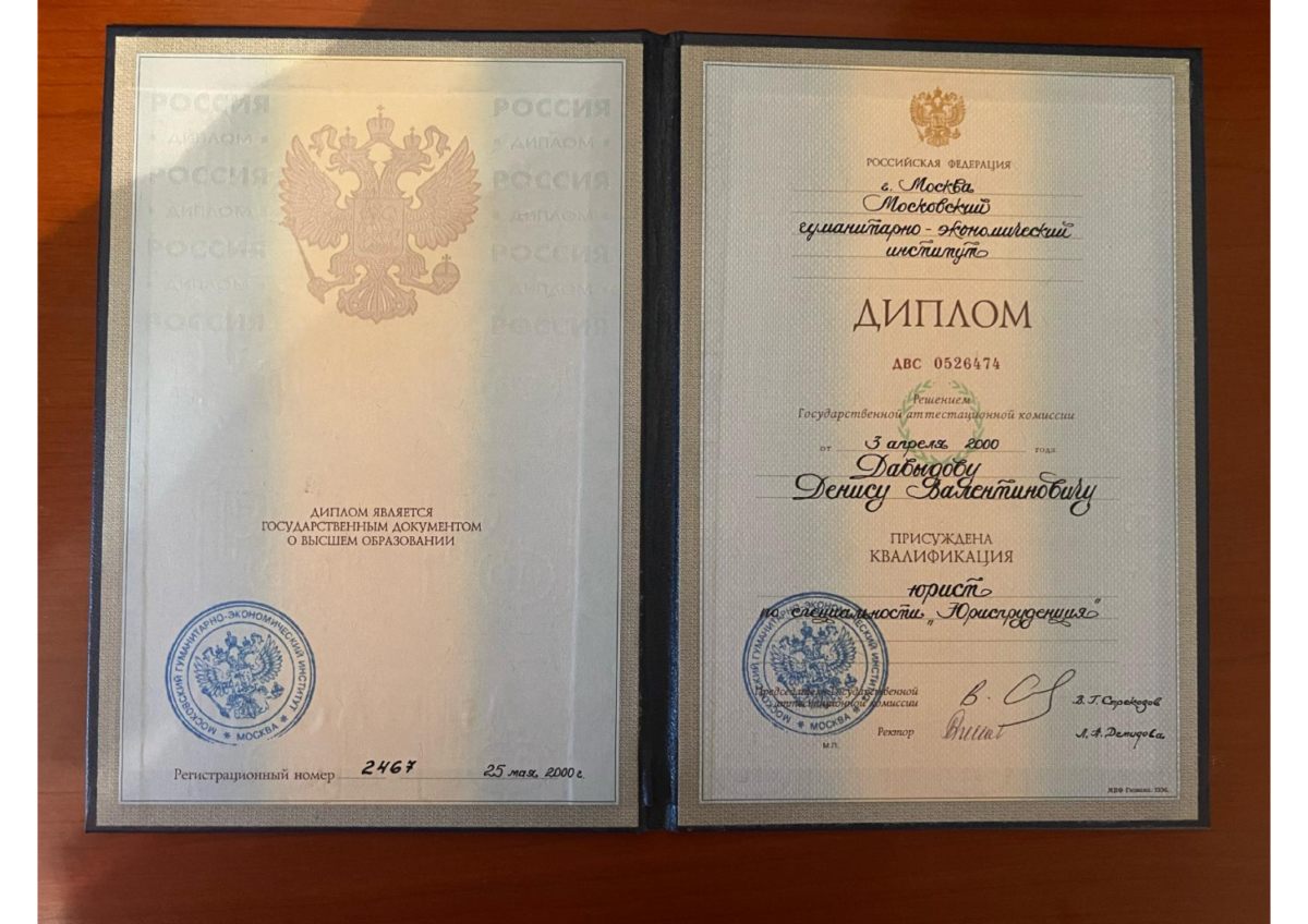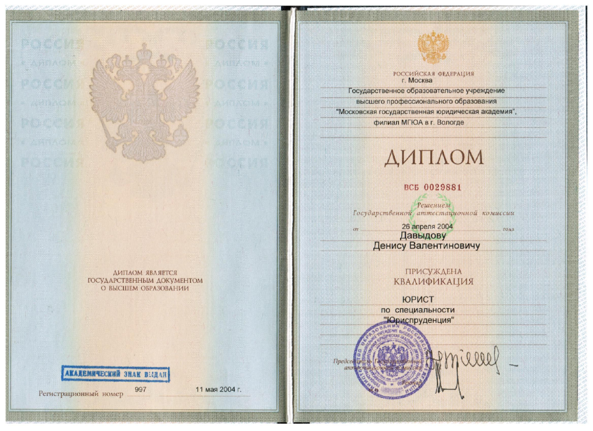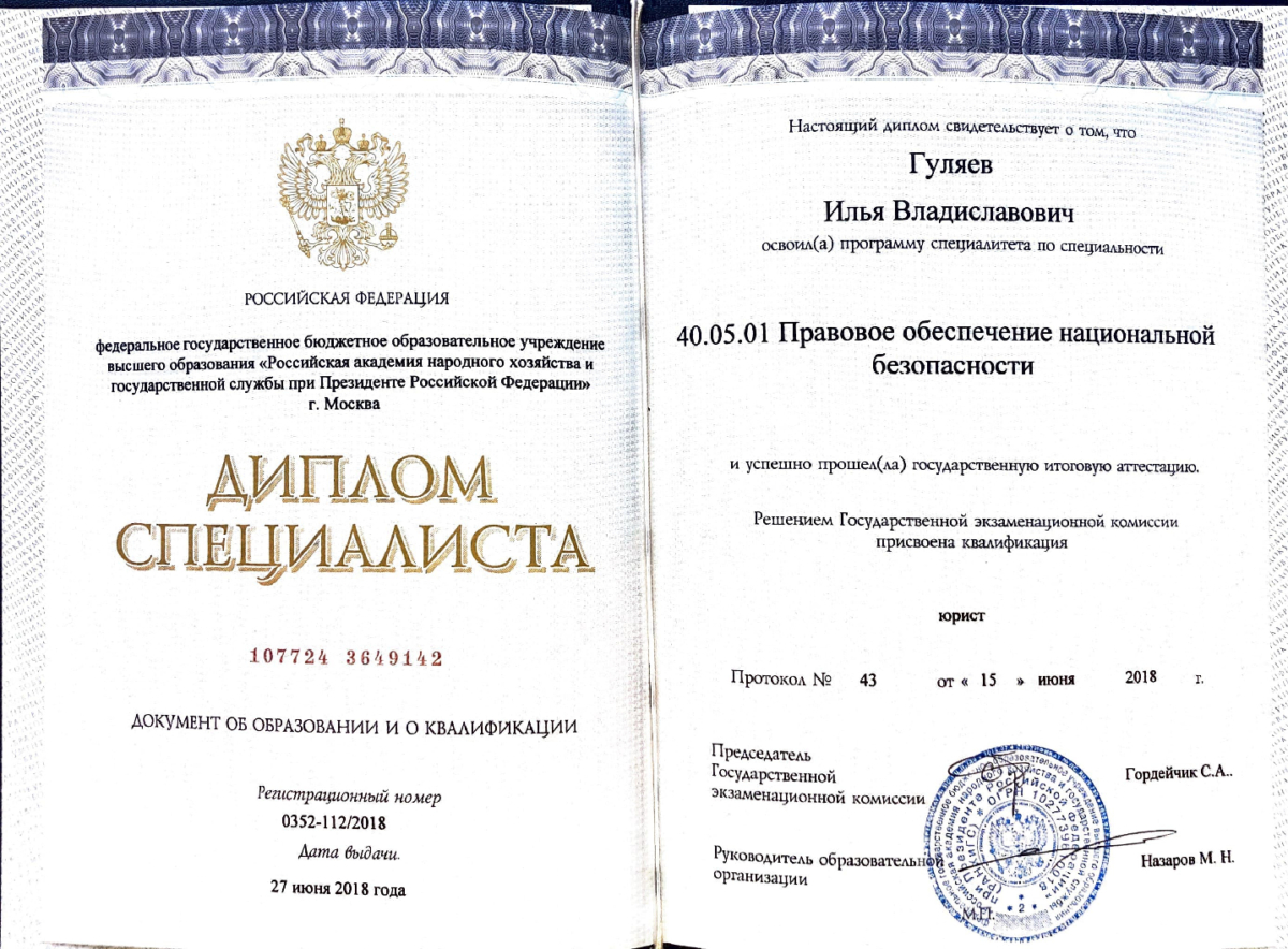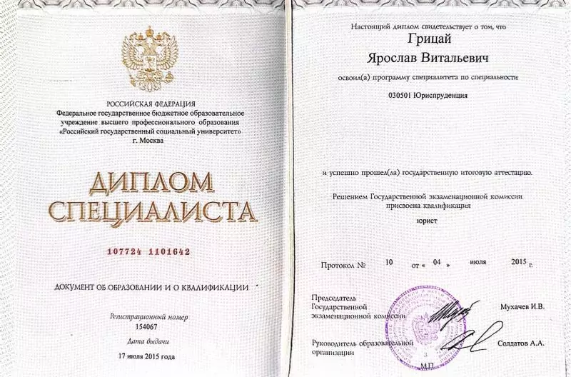 - Диплом по специальности юриспруденция,