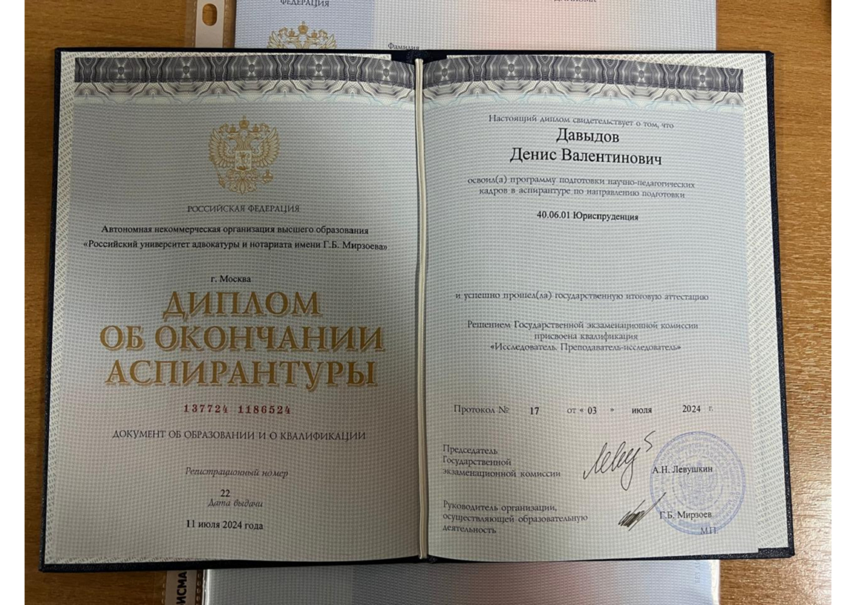 Обращаясь ко мне, Вы выбираете адвоката с глубокими знаниями и высоким уровнем профессионализма. Моя степень кандидата юридических наук подтверждает не только практический опыт, но и серьезную научную подготовку. Автор многочисленных научных трудов, с опытом в законотворческой деятельности, я внимательно анализирую судебную практику, что позволяет разрабатывать эффективные стратегии с учетом последних тенденций и решений судов. Это гарантирует тщательный подход к вашей ситуации и максимальную защиту ваших интересов. Доверьтесь эксперту, который сочетает теорию и практику для достижения наилучших результатов.