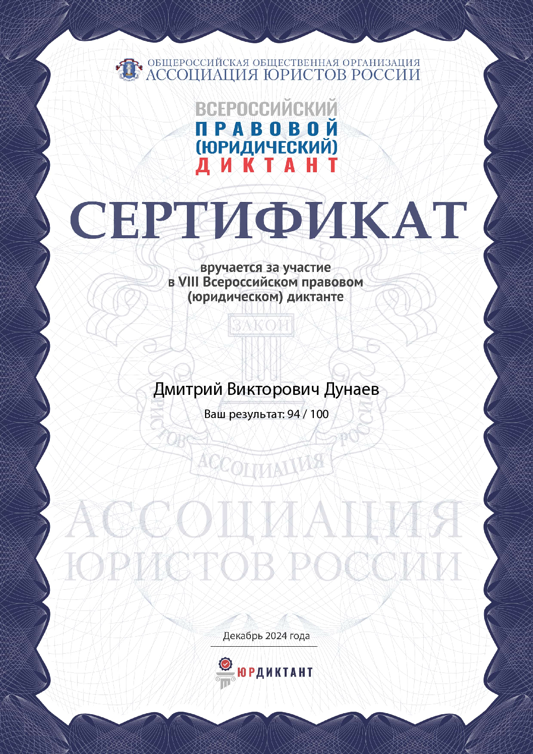 Здравствуйте, меня зовут Дмитрий Дунаев. В настоящий момент являюсь индивидуальным предпринимателем по оказанию юридических услуг. Имею 12-летний опыт работы Моя практика охватывает широкий спектр правовых услуг, включая гражданское, налоговое, жилищное, трудовое, семейное право, право социального обеспечения, юридическая помощь в сфере туризма, дела об административных правонарушениях, представительство потерпевших по уголовным делам, исполнительное производство. Я готов предоставить Вам квалифицированную юридическую помощь, основанную на успешной, многолетней практике юриста, и сделать все возможное для защиты ваших интересов в суде. Если у вас возникли вопросы или вам нужна консультация по вопросам, всегда готов помочь Вам разобраться в сложных юридических вопросах и найти оптимальное решение Вашей ситуации.