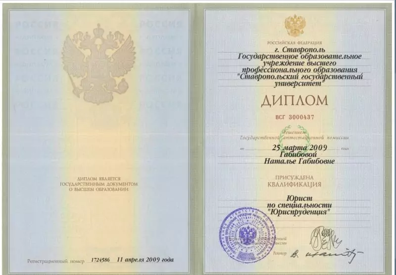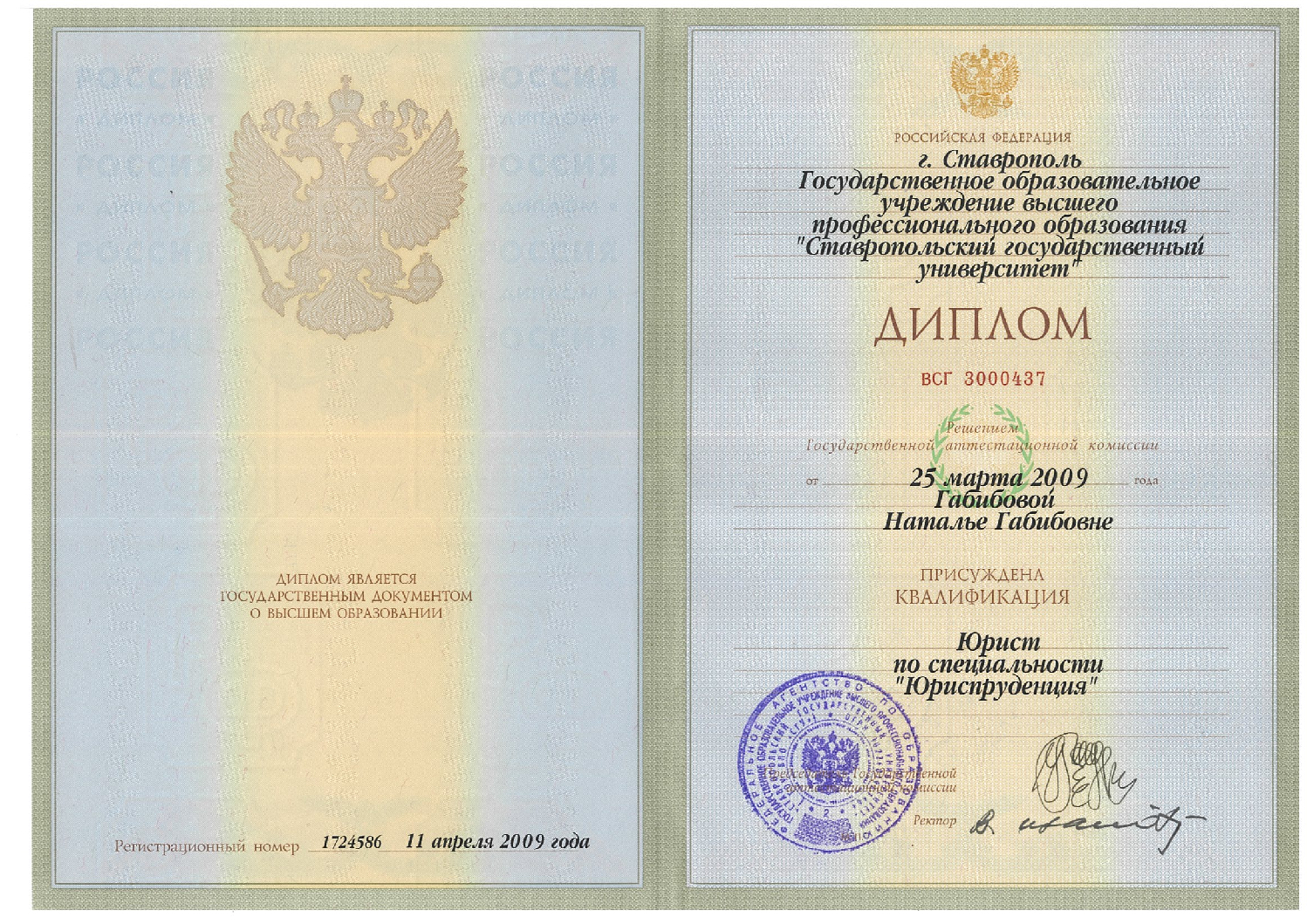 Высшее образование – Ставропольский государственный университет, юрист, юриспруденция