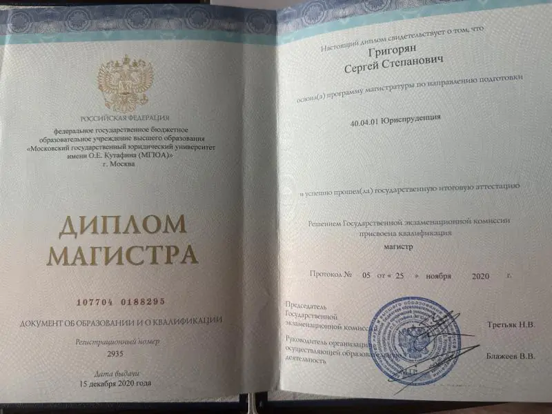 Документы провереныСписок судебных дел в карточке юриста может быть не полным и зависит от того, указан ли юрист Григорян Сергей Степанович в деле или нет