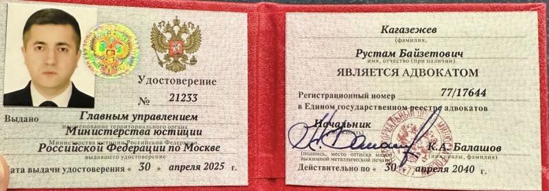 Список судебных дел в карточке адвоката может быть не полным и зависит от того, указан ли адвокат Кагазежев Рустам Байзетович в деле или нет