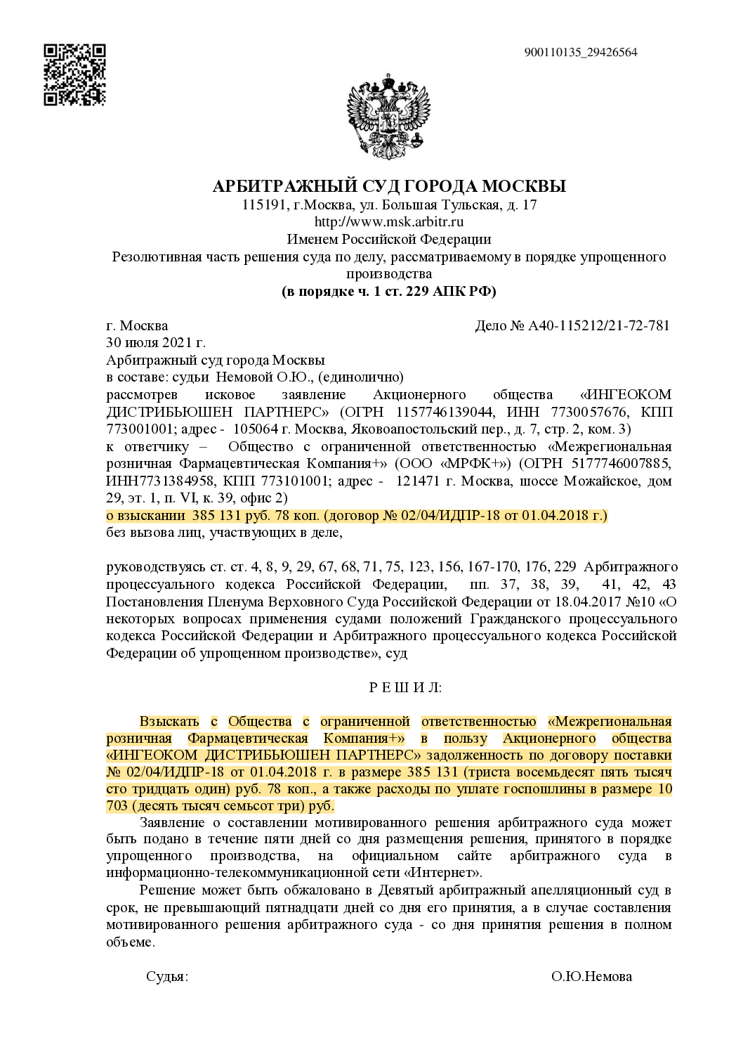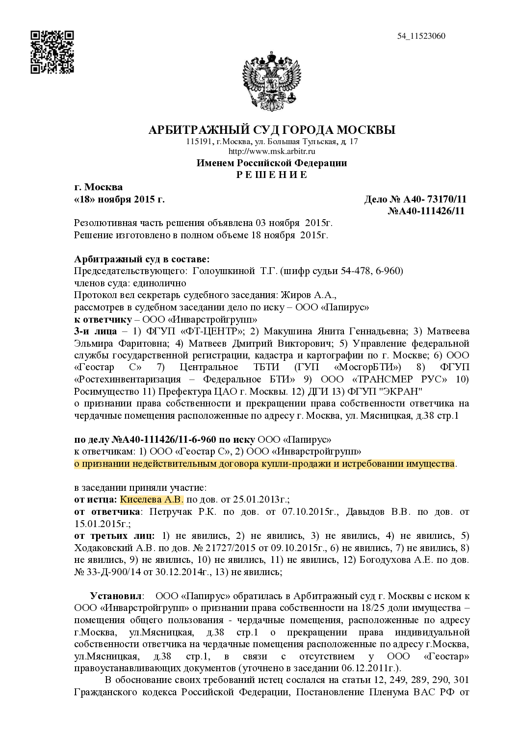- Арбитраж А40-126543/22-92-977А40-115212/21-72-781А40-29282/21-127-209А40-130589/17А40-102198/18-121-1230А40-111426/11А40-111426/11 6-960