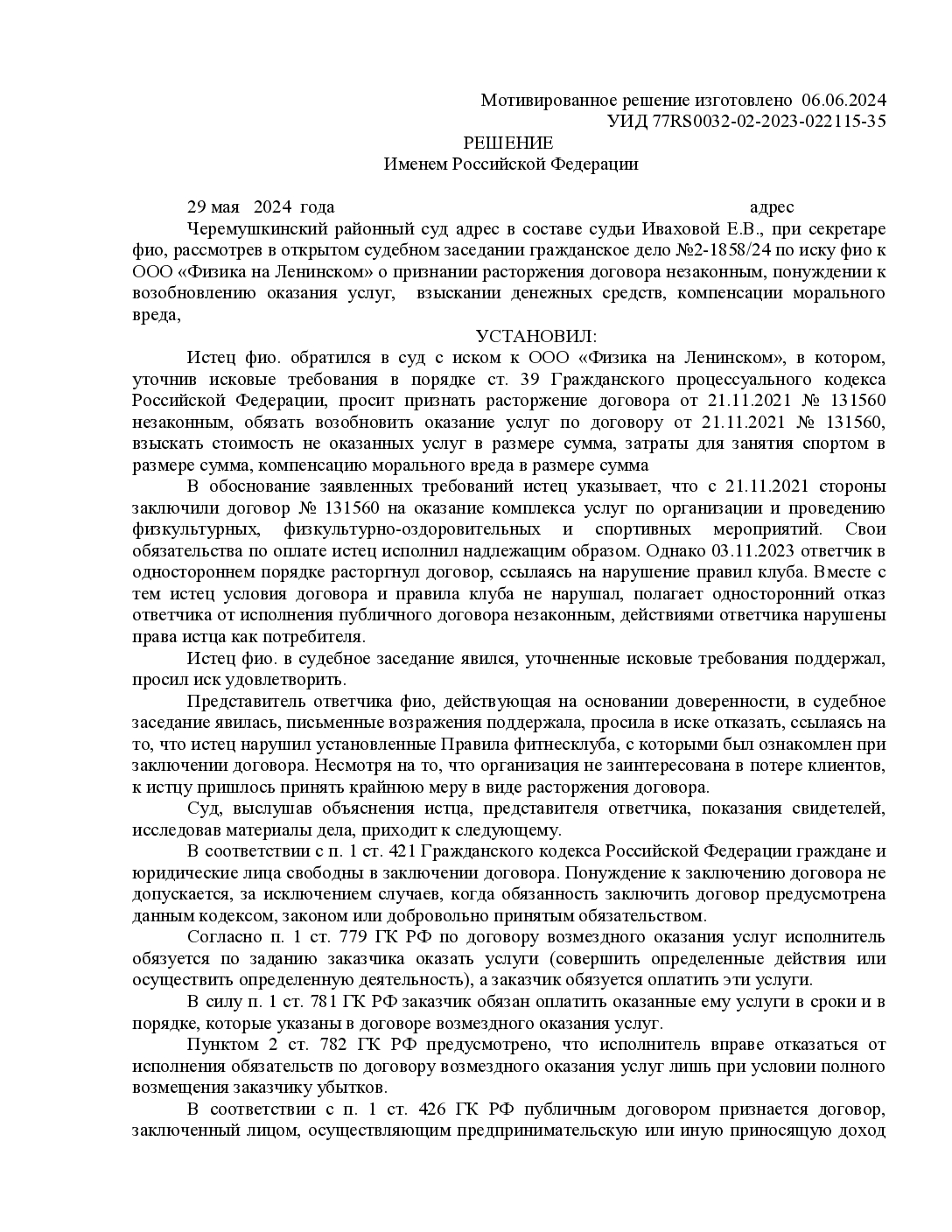 - Возврат денежных средств за невыполненные услуги от 1 000 ₽