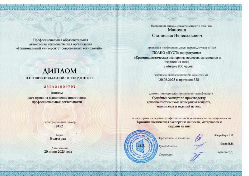 Образование: магистр права, аспирант СГЛА, Деятельность: Арбитражный управляющий СРО “ГАУ”, управляющий партнер АНО ДПО “Экспериментальный научный институт”, управляющий партнер ООО “Экспальянс”, адвокат Московской коллегии адвокатов “Грифон” номер в реестре адвокатов АП гор, Москвы 77/13631