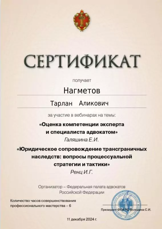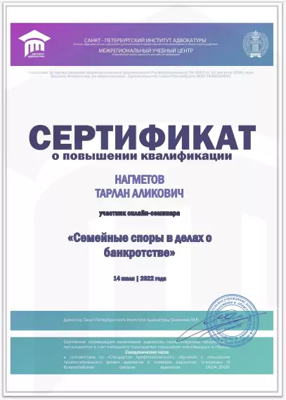 Список судебных дел в карточке адвоката может быть не полным и зависит от того, указан ли адвокат Нагметов Тарлан Аликович в деле или нет