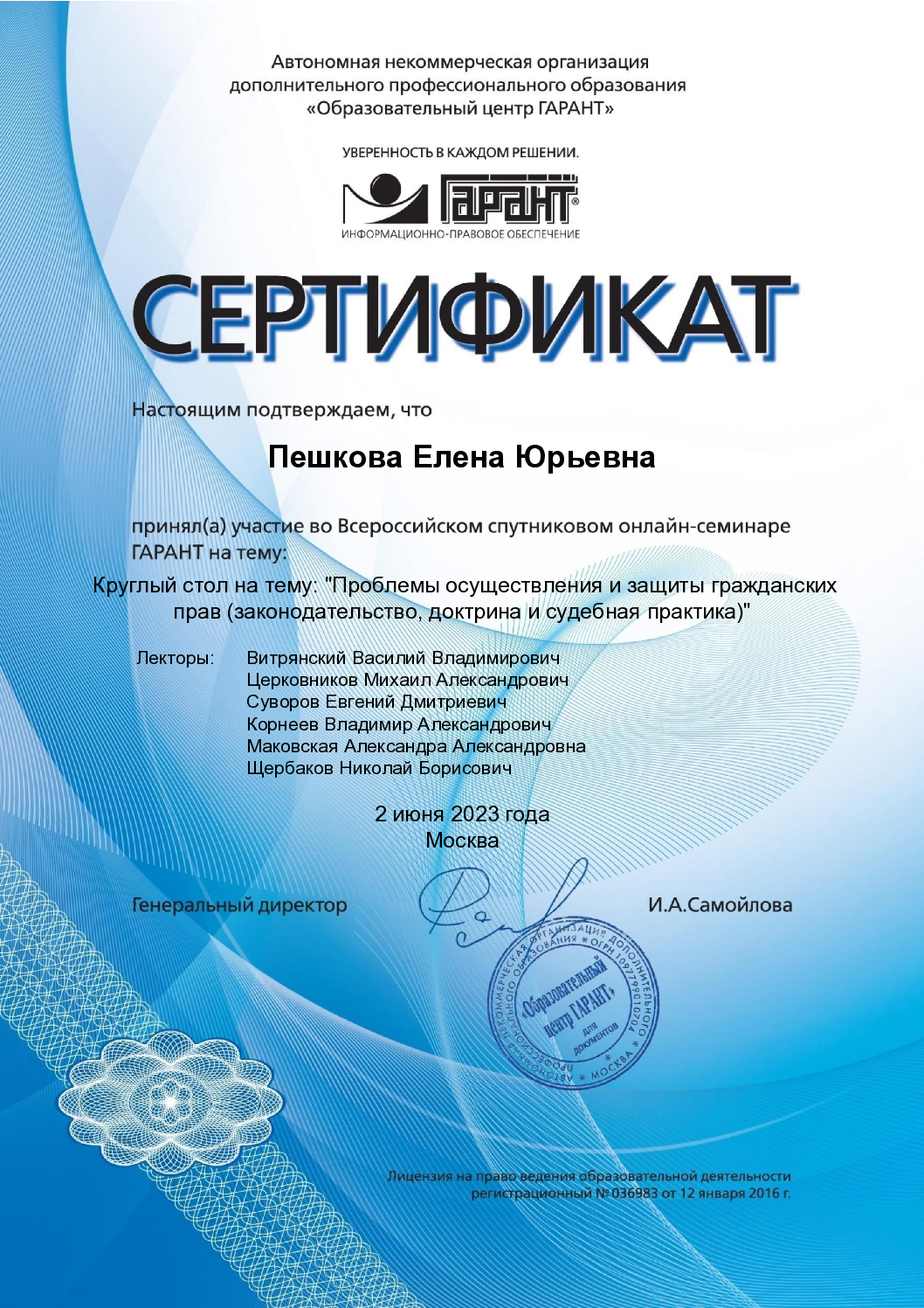 Я окончила юридический факультет Московского Открытого Социального Университета в 2005 году и работаю юристом уже 19 лет. У меня есть успешный опыт в решении пенсионных вопросов, защите прав потребителей, установлении юридических фактов, расторжении браков, взыскании долгов по распискам, а также в страховых и трудовых спорах. Я также занимаюсь наследственным и медицинским правом. Работаю как с физическими, так и с юридическими лицами.