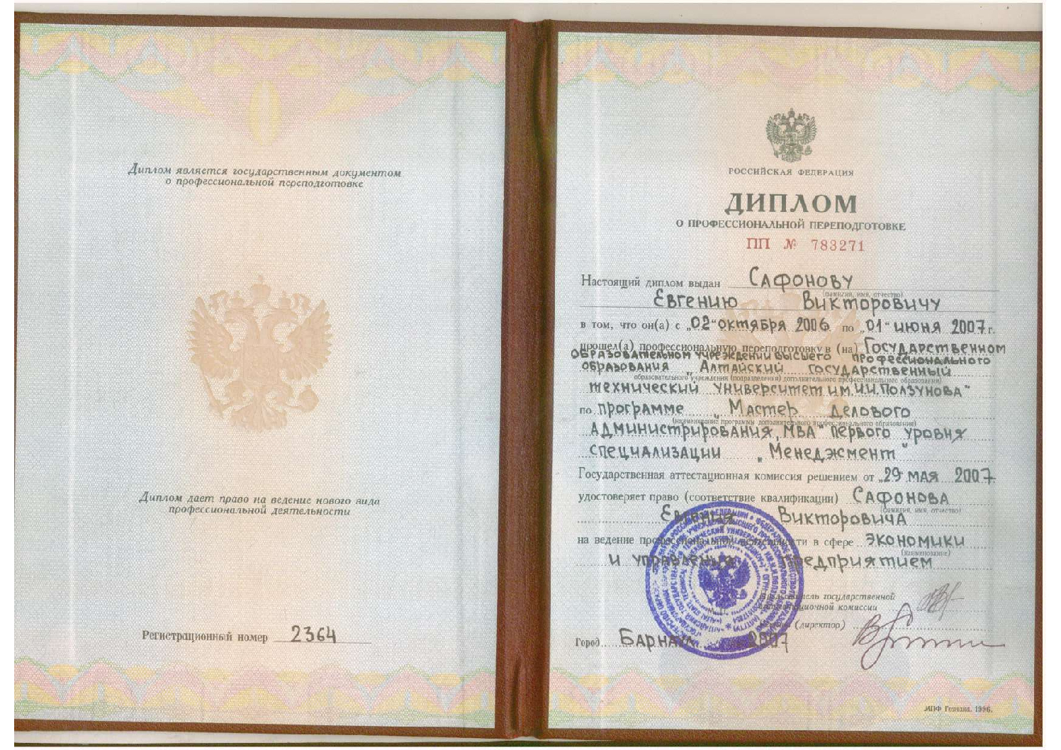 Алтайский государственный технический университет им. И.И. Ползунова — Экономика и управление на предприятии (по отраслям) — Барнаул